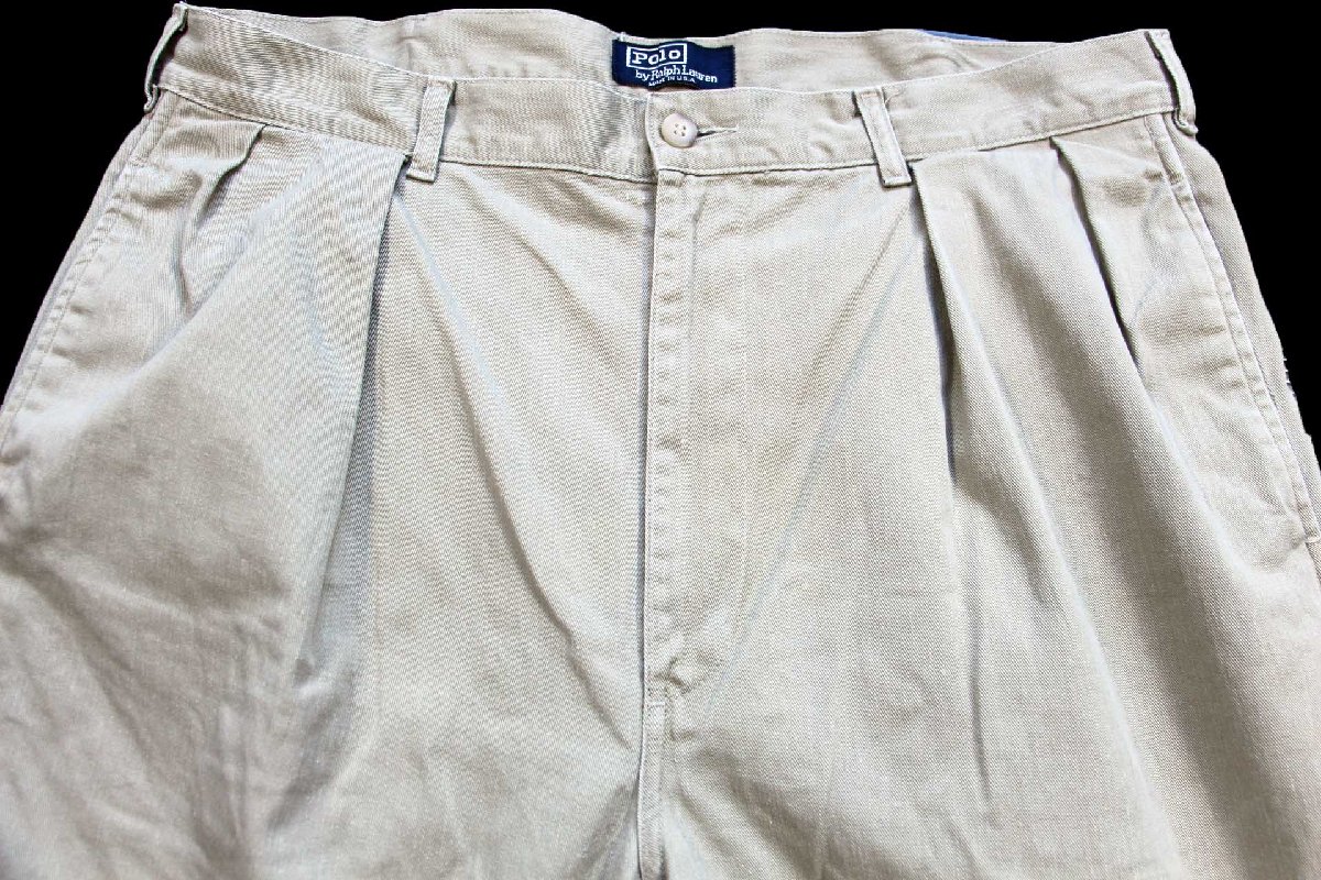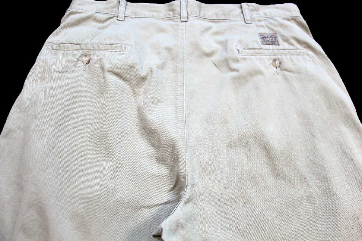90s USA製 ポロ ラルフローレン ツータック コットン チノパン カーキ W36