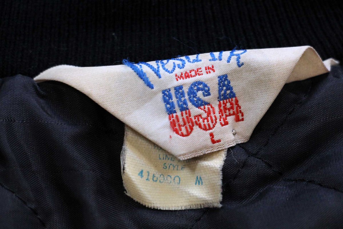 コンディション:着用感があり、刺繍やタグに薄汚れ、右袖リブに多少の汚れ、所々に少しの伝線、裏地に細かいステッチ抜けがあります。目立つダメージや酷い汚れはなく、古着慣れされている方なら問題なく着用いただける程度です。