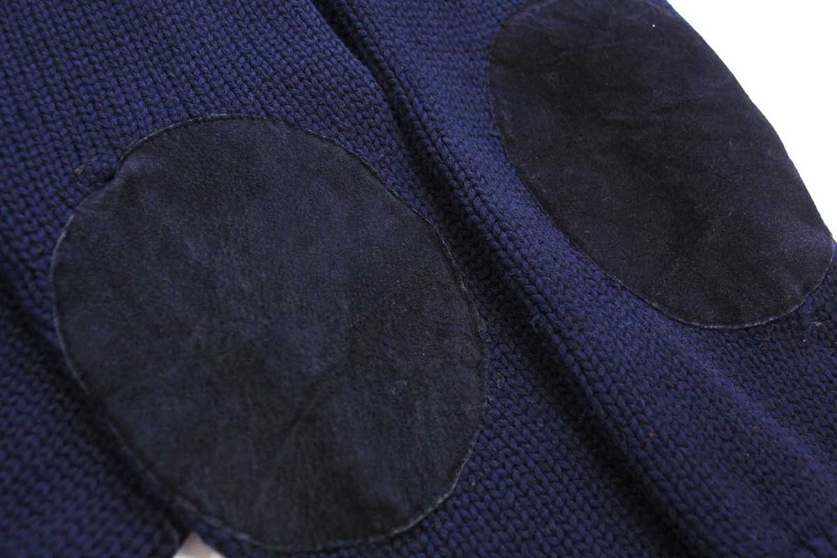 両ヒジにダメージがありエルボーパッチが縫い付けられています。