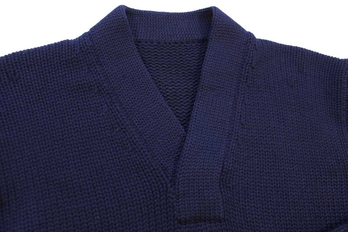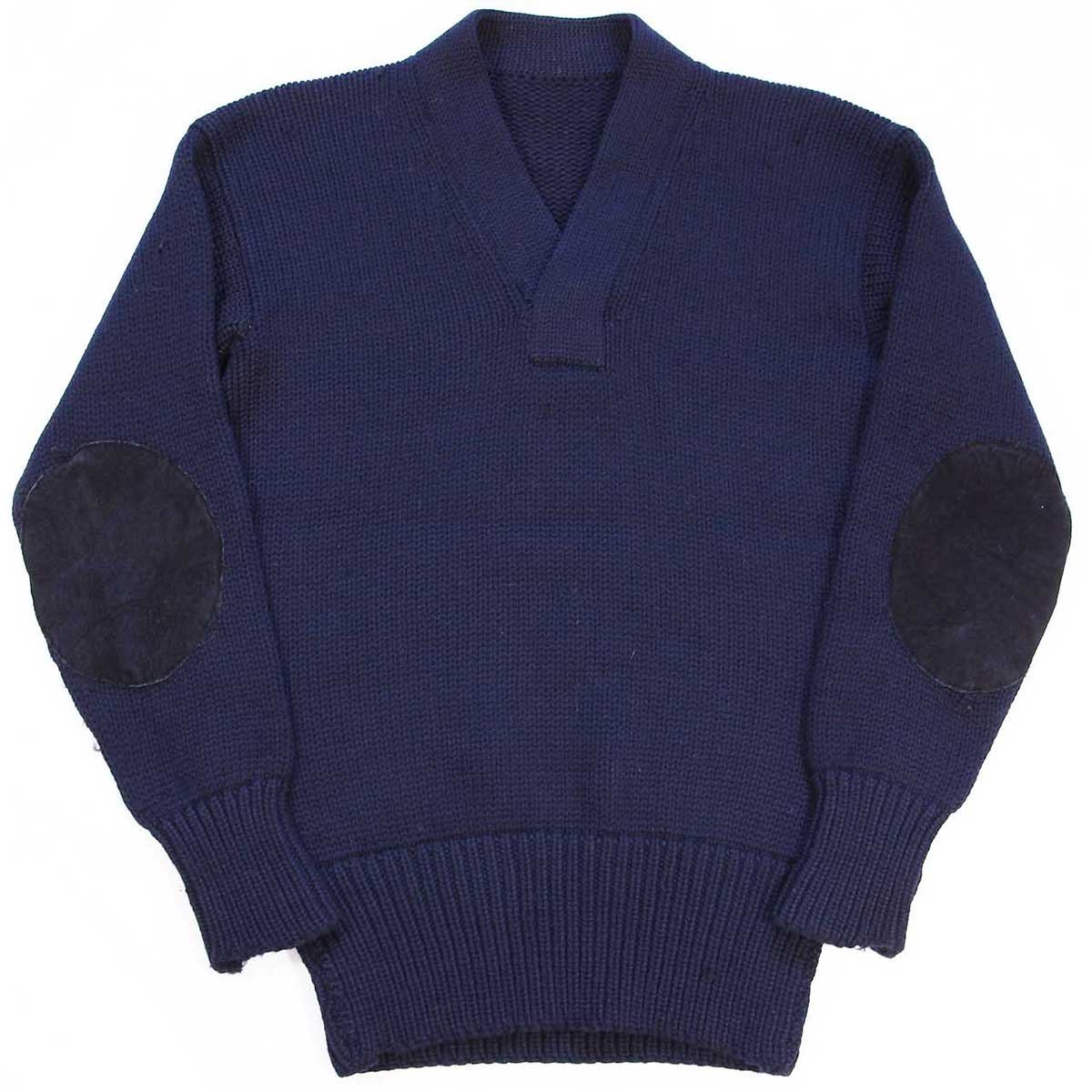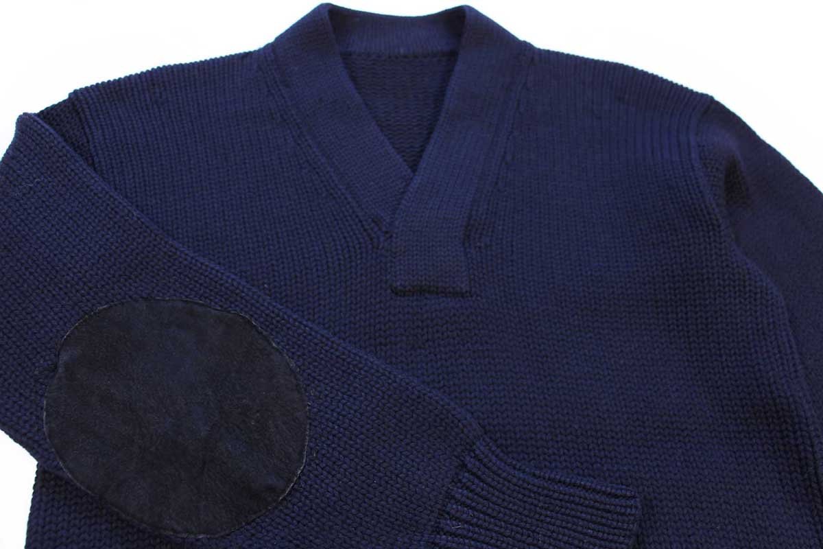 40s UNKNOWN Vネック エルボーパッチ付き ローゲージ ウールニット レタードセーター 濃紺