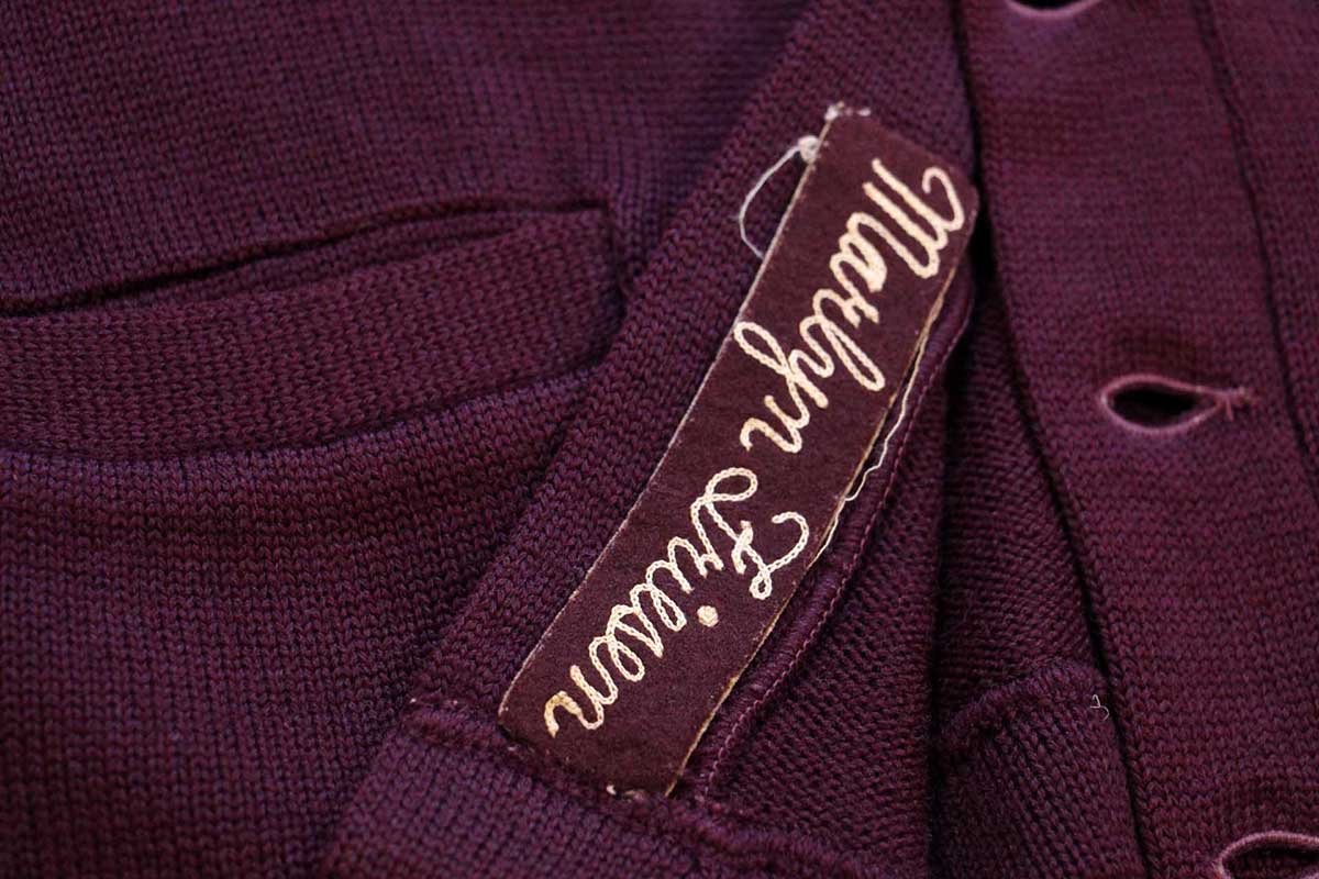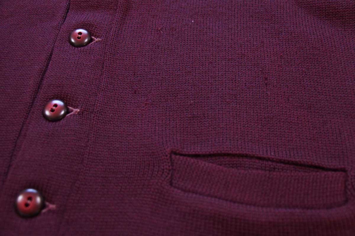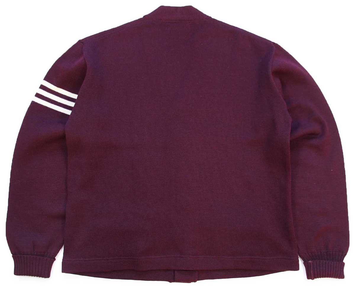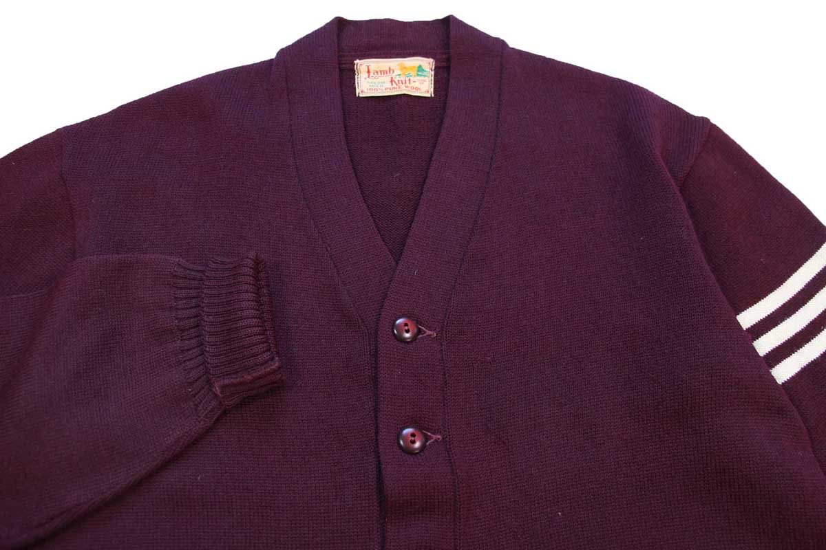 50s Lamb Knit ウールニット レタードカーディガン ワインレッド