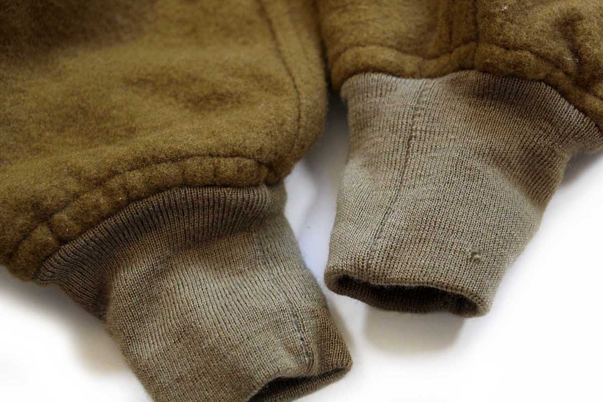 コンディション:両袖リブに細かい小穴、左胸下付近に少しの接着剤の様な汚れはありますが、目立つダメージや酷い汚れはなく、程度良いです。