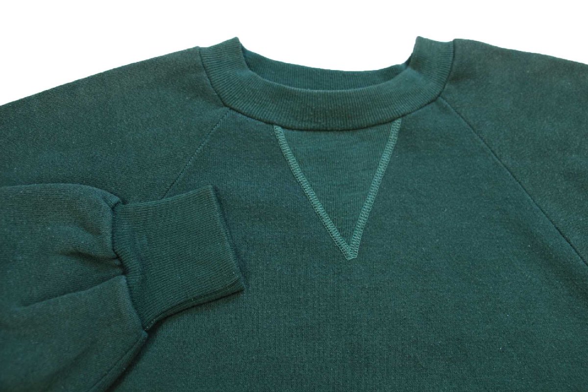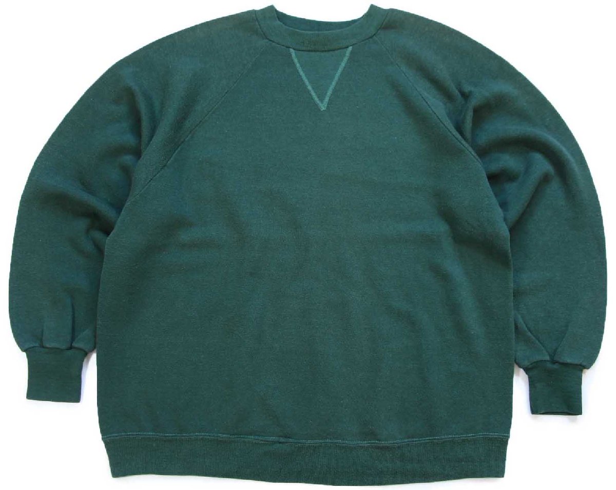 70s USA製 RUSSELLラッセル 無地 前V スウェット 緑 フェード M★ブランク