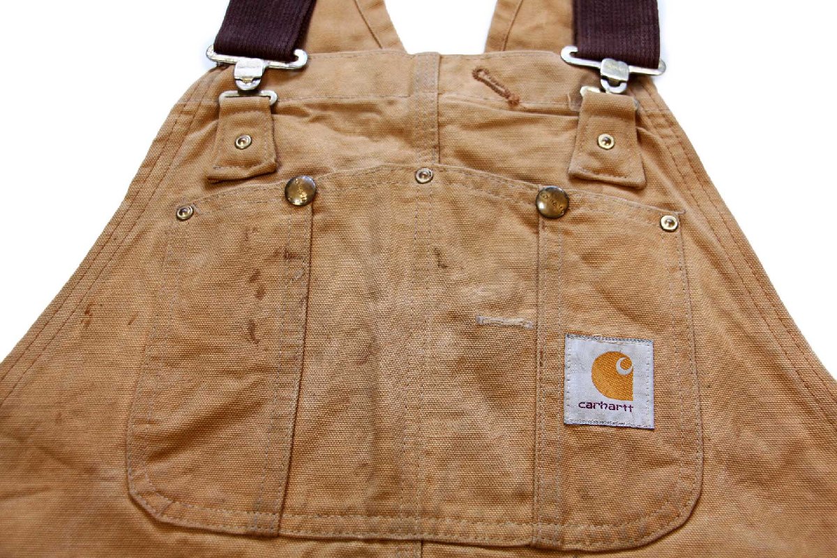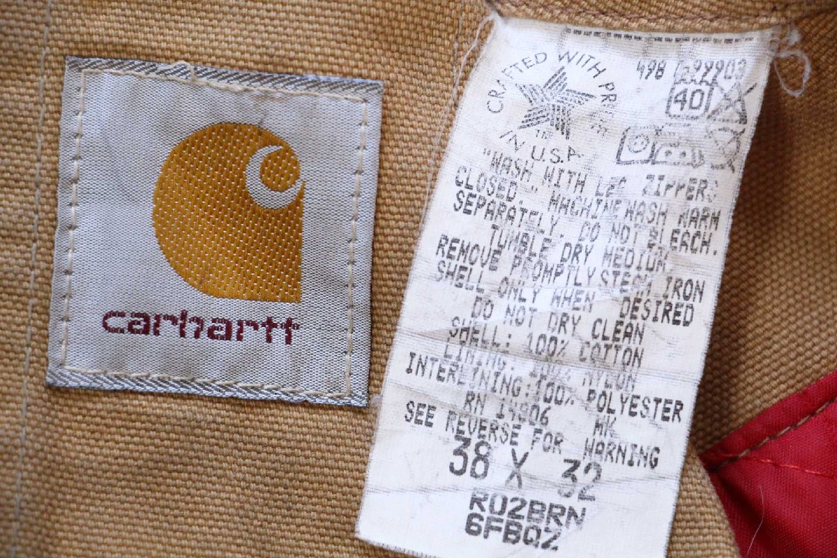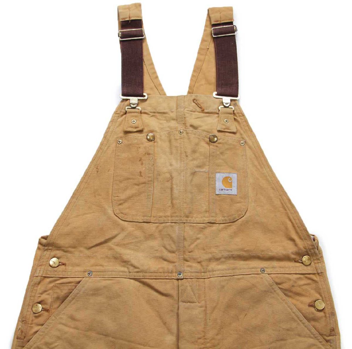 90s USA製 carharttカーハート キルティングライナー ダブルニー ダック地 オーバーオール 茶 W38 L32