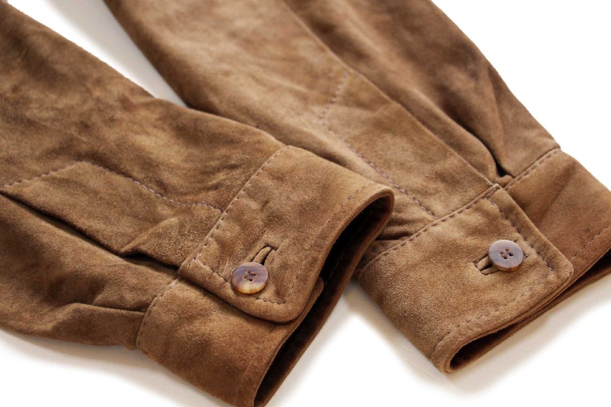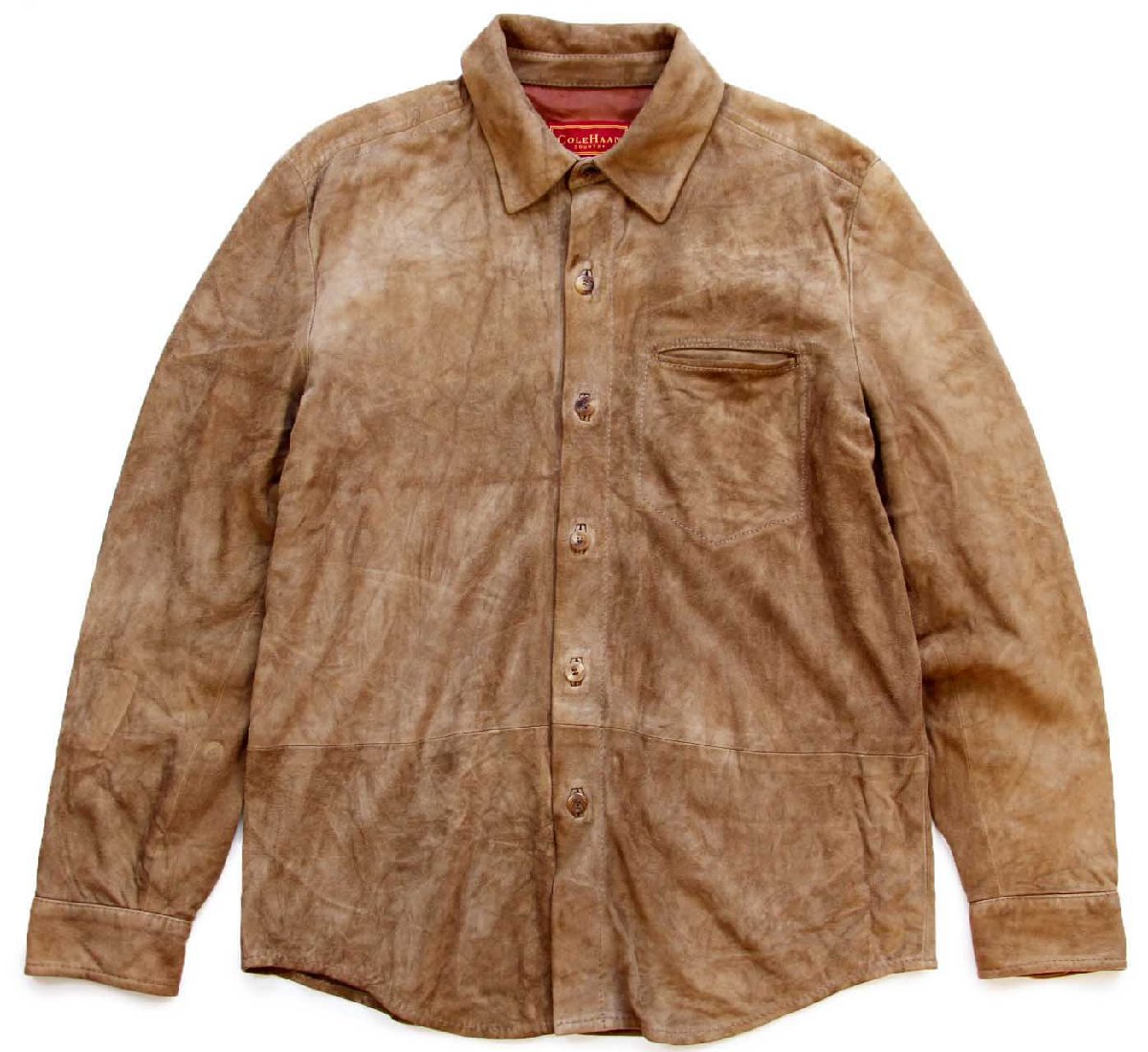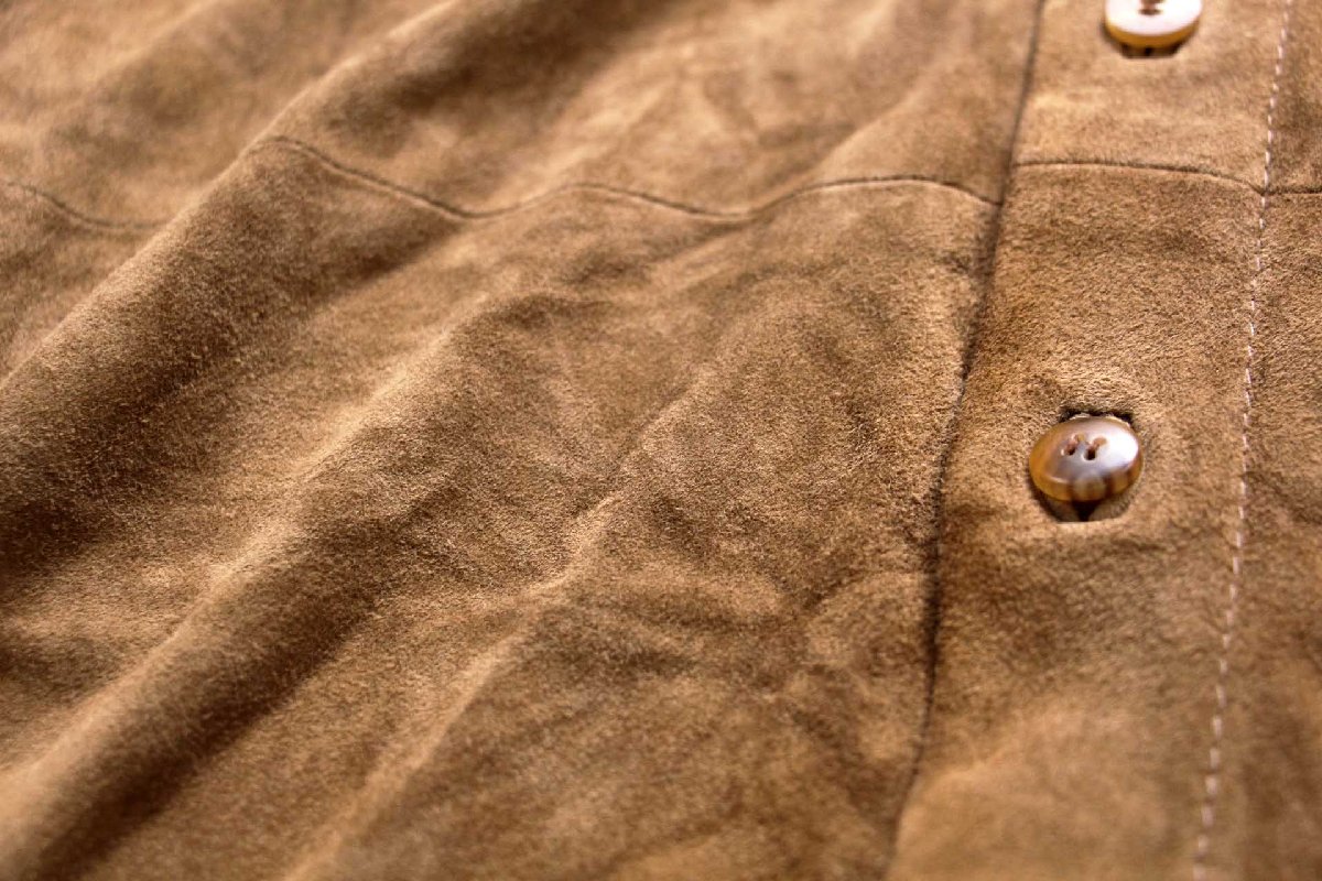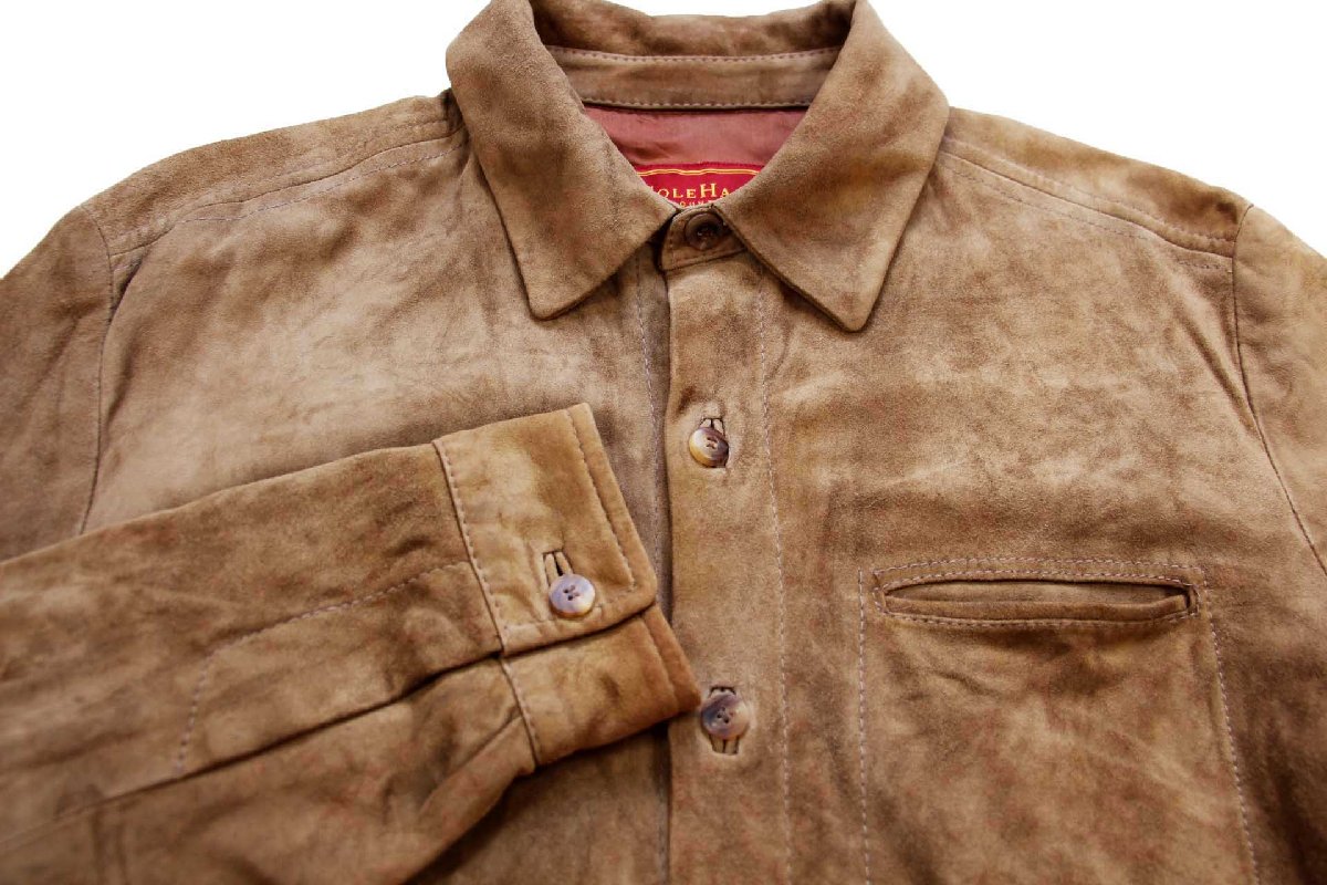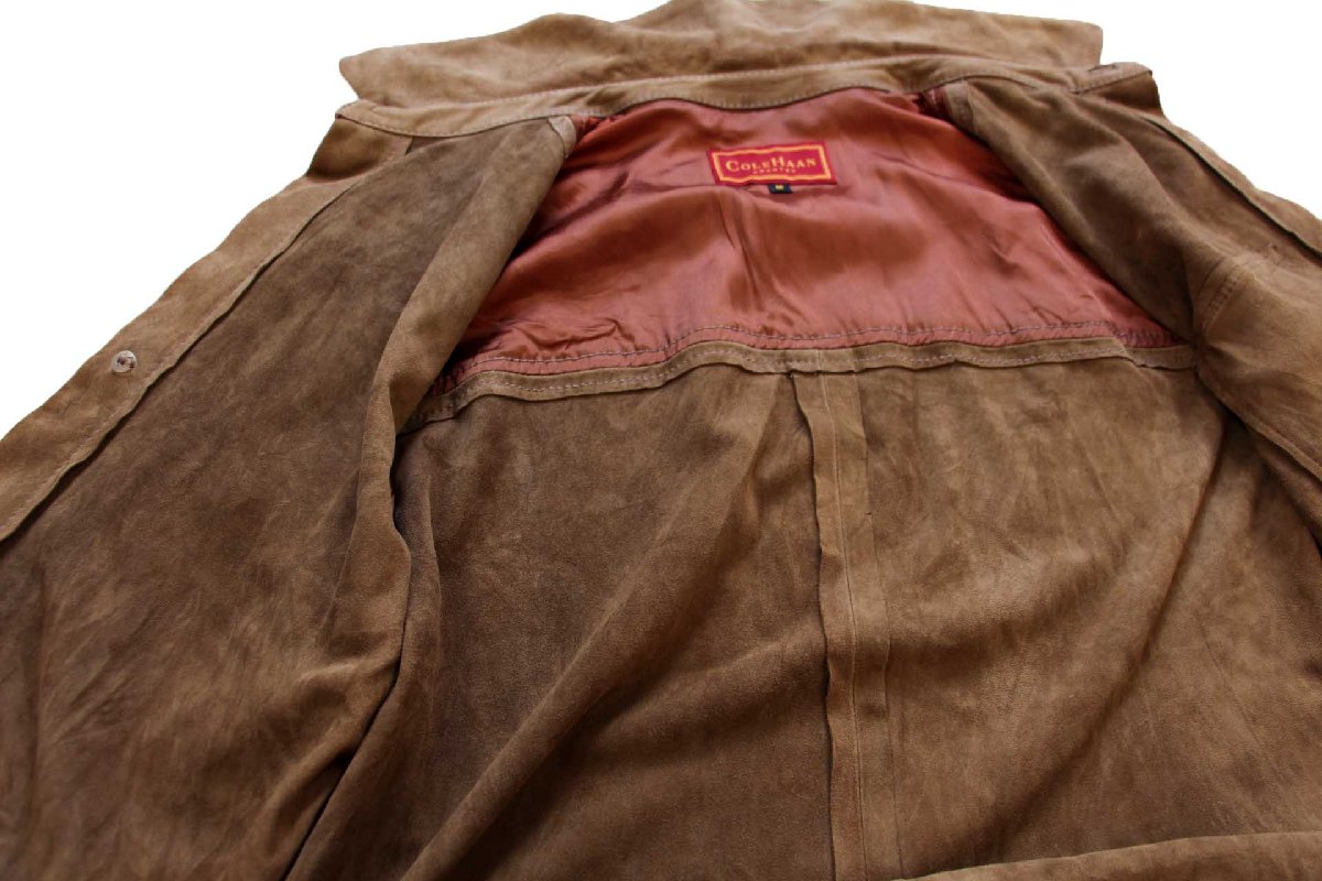 90s USA製 COLE-HAAN コールハーン ラムスキン スエード レザーシャツ ブラウンベージュ M