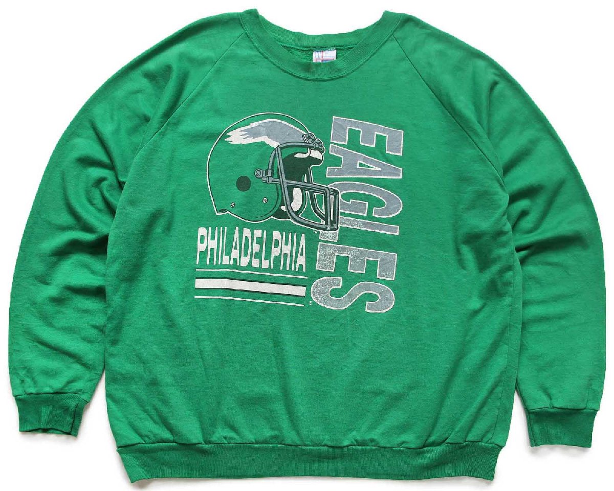 80s USA製 NFL PHILADELPHIA EAGLES アメフト ひび割れプリント スウェット 緑 XL