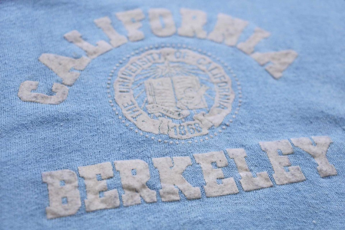 80s CALIFORNIA BERKELEY フロッキープリント スウェット 水色