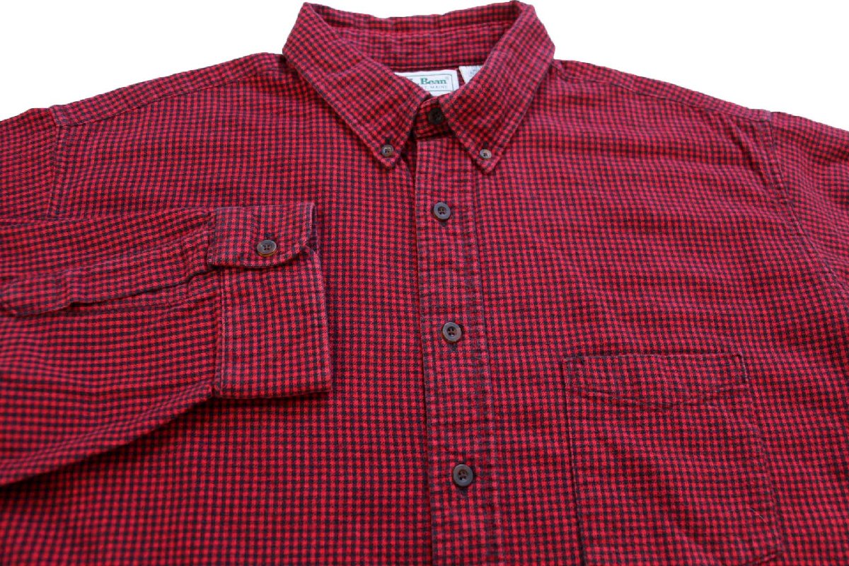 90s USA製 L.L.Bean シェパードチェック ボタンダウン コットン フランネルシャツ 赤×黒 XL