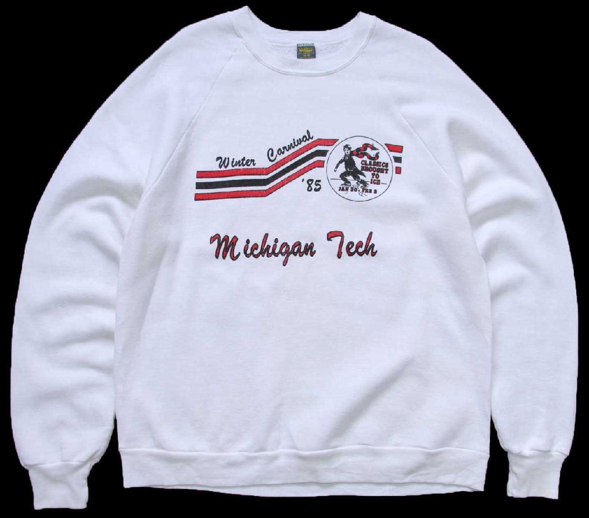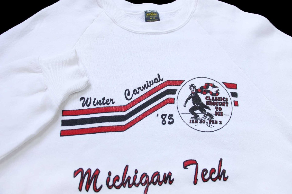 80s USA製 JERZEES BY RUSSELLラッセル Winter Carnival Michigan Tech チャップリン スウェット 白 XL
