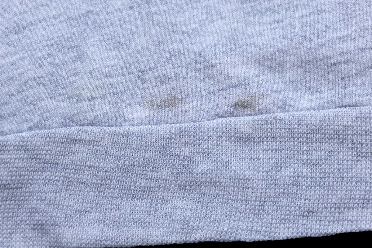 コンディション:着用感があり、所々に多少の薄汚れ、ネックと胸下のラインに少しの色にじみがあります。目立つダメージはなく、古着慣れされている方なら問題なく着用いただける程度です。