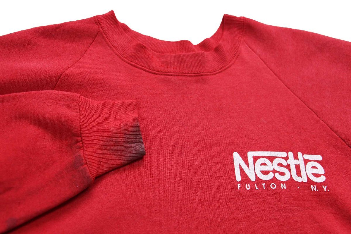 80s USA製 Nestle ロゴ ひび割れプリント スウェット ボロ 赤 XXL★特大