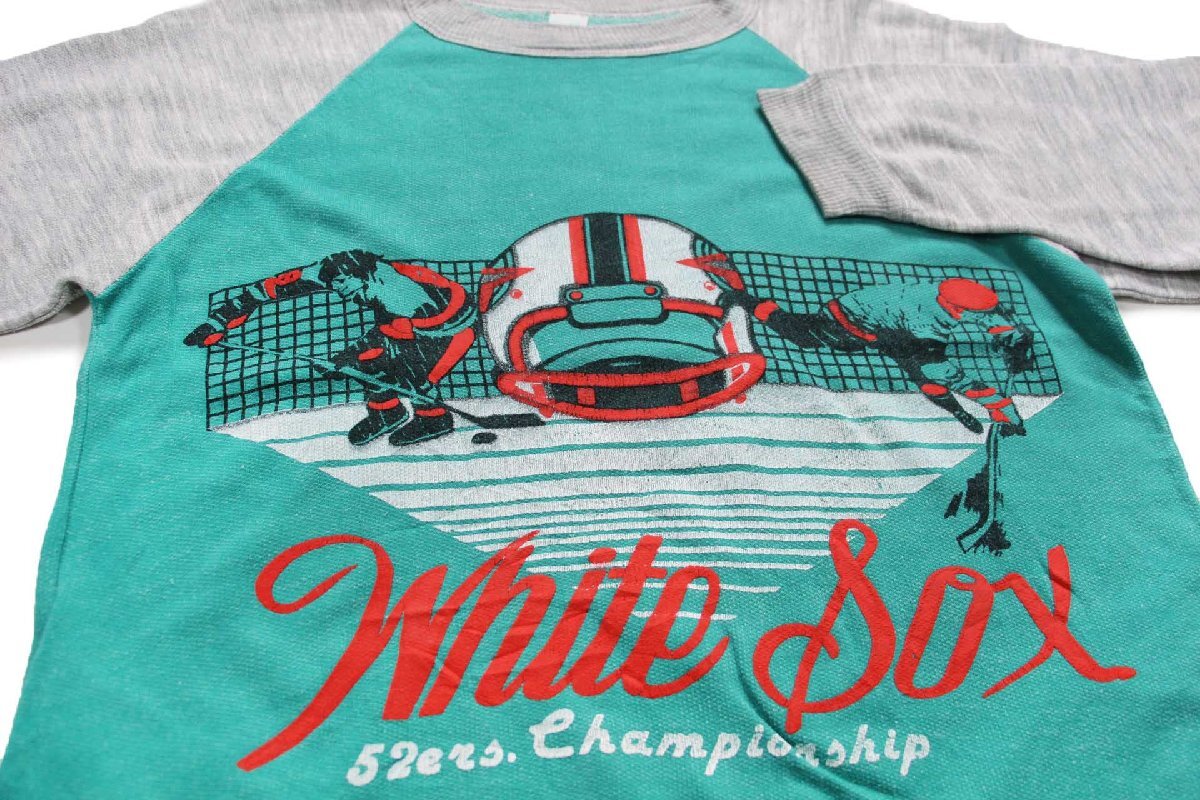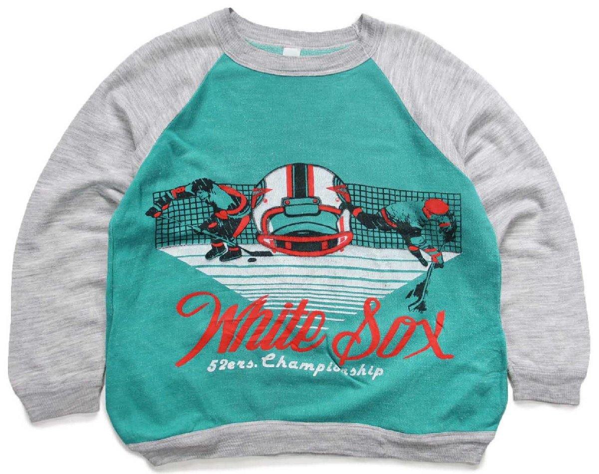 80s イタリア製 White Sox 52ers. Championship ツートン 切り替え スウェット 緑×杢グレー M
