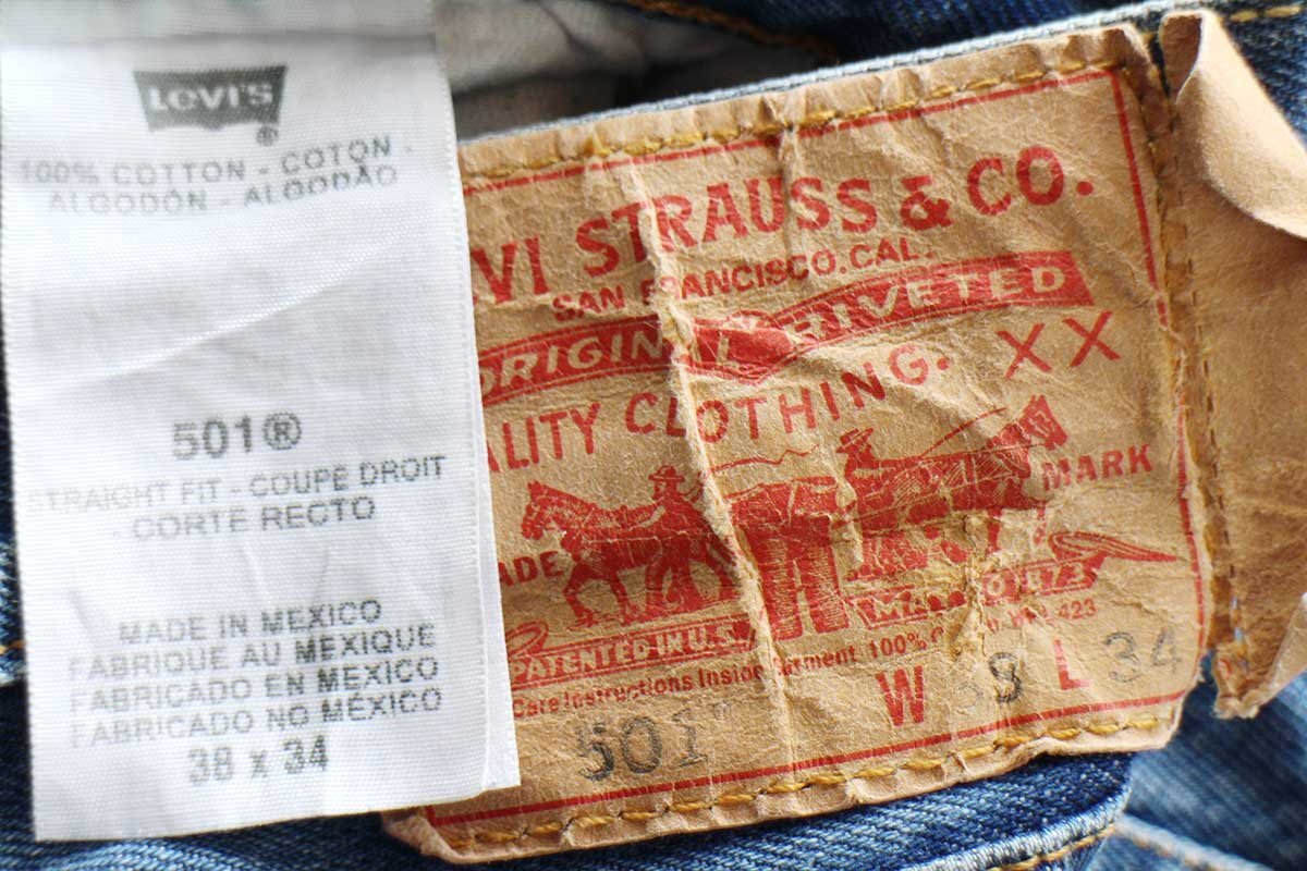 メキシコ製 Levi'sリーバイス 501 ダメージ デニムパンツ ヒゲ W38 L34★SDP3699