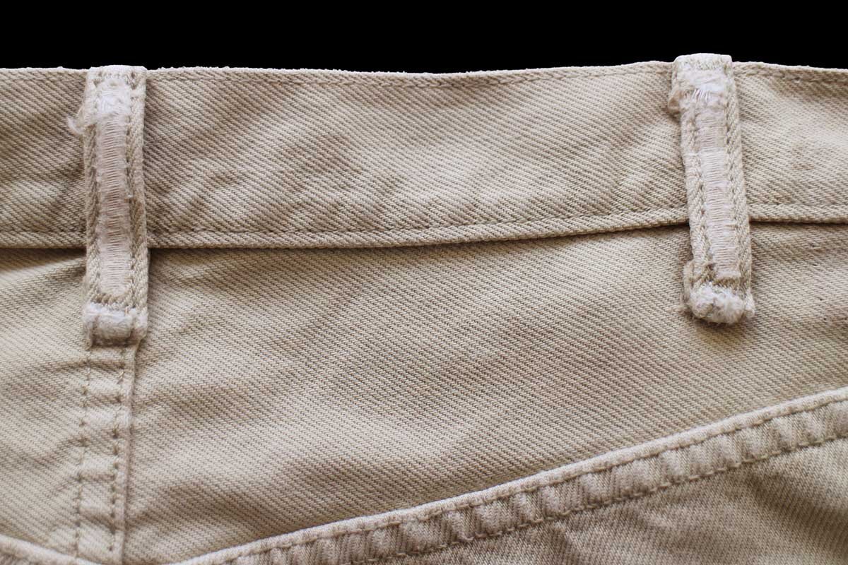 【状態追記】:全体の所々に色落ち、コインポケットに少しの色汚れ、細かい擦れ、ウエスト両サイドや右ヒップポケット、右裾に少しの擦り切れ