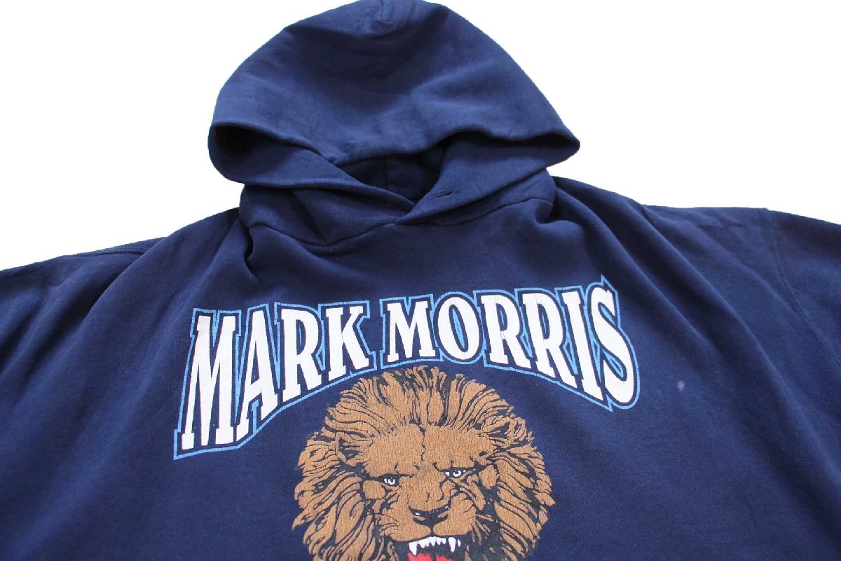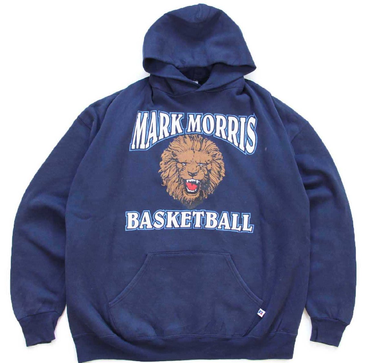 90s メキシコ製 RUSSELLラッセル MARK MORRIS BASKETBALL ライオン ひび割れプリント スウェットパーカー 紺 XXL★特大 フーディー
