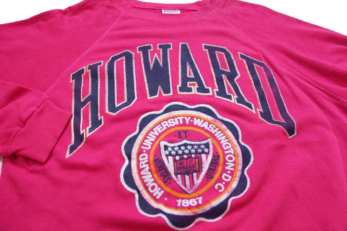 80s Hanes HOWARD UNIVERSITY ひび割れプリント スウェット ピンク XL