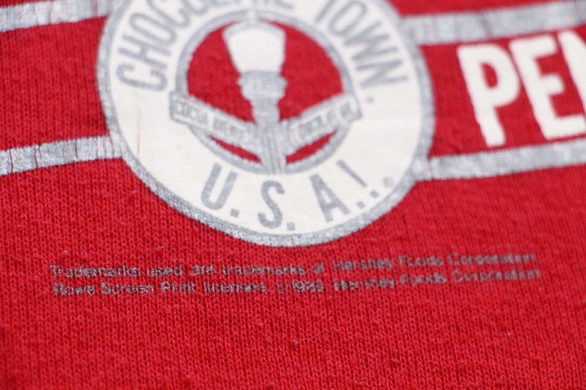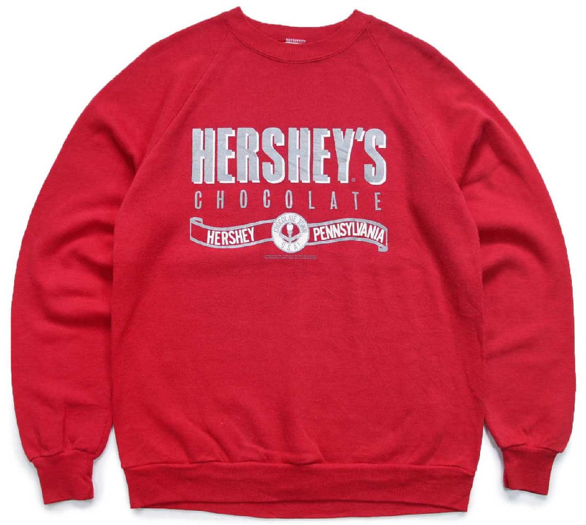 80s USA製 HERSHEY'Sハーシーズ チョコレート ロゴ CHOCOLATE TOWN PENNSYLVANIA スウェット 赤 L★RUSSELLラッセル