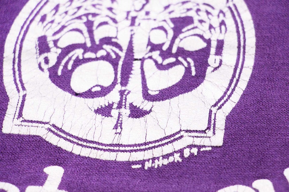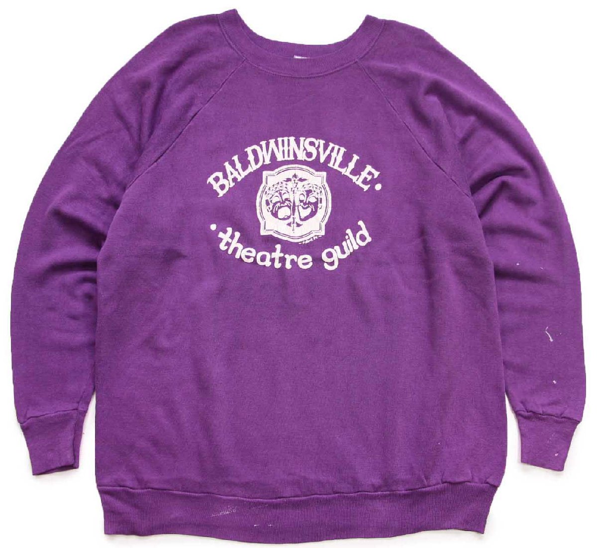 80s USA製 BALDWINSVILLE theatre guild ツーフェイス ひび割れプリント ペンキ飛び スウェット 紫 XL
