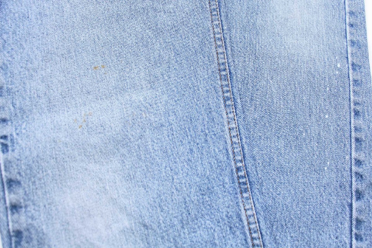 コンディション:着用感があり、左ヒザ下に細かい色抜け、右ヒザや右ヒザ下裏に細かいサビ汚れ、バック左右ベルトループの付け根や左ヒップポケットの内側付け根に少しの擦り切れ、裾に擦り切れがあります。致命的なダメージや酷い汚れはなく、生地もしっかりしていて、古着慣れされている方なら問題なく着用いただける程度です。