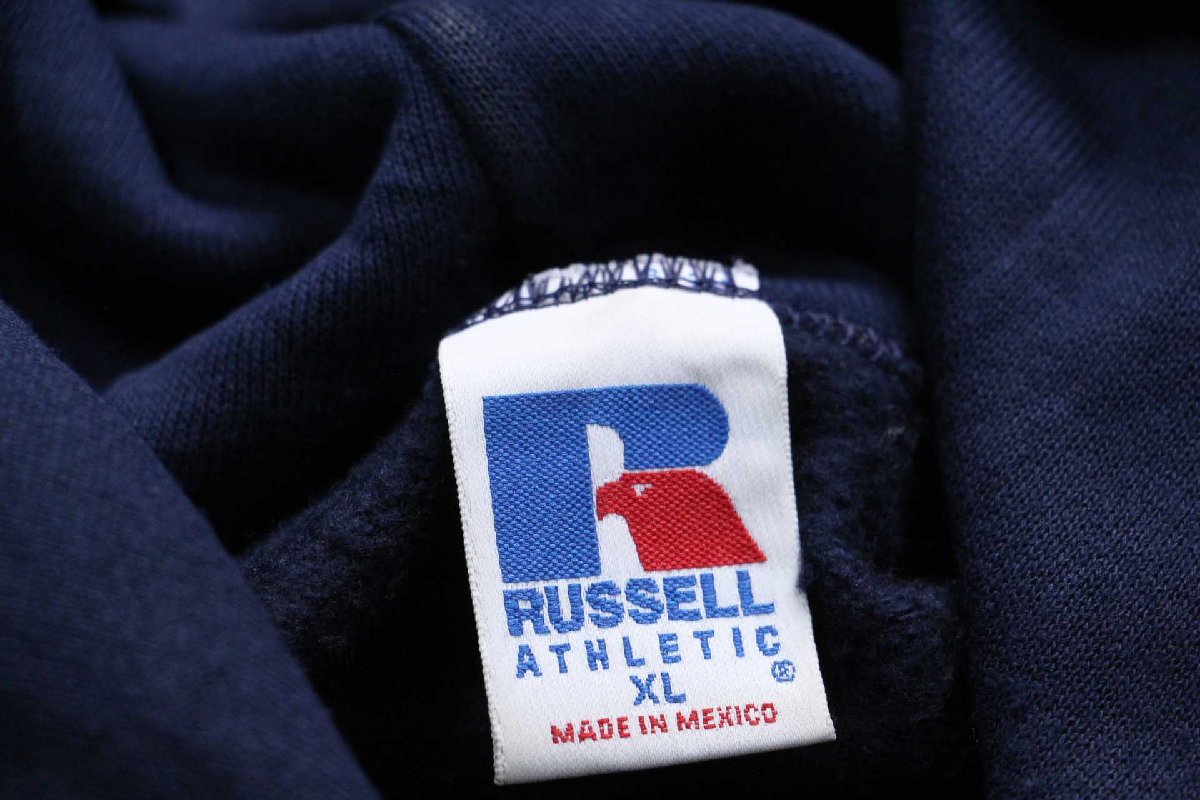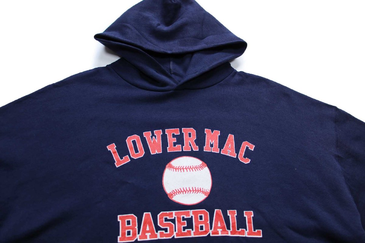 90s メキシコ製 RUSSELLラッセル LOWER MAC BASEBALL ベースボール スウェットパーカー 紺 XL★フーディー
