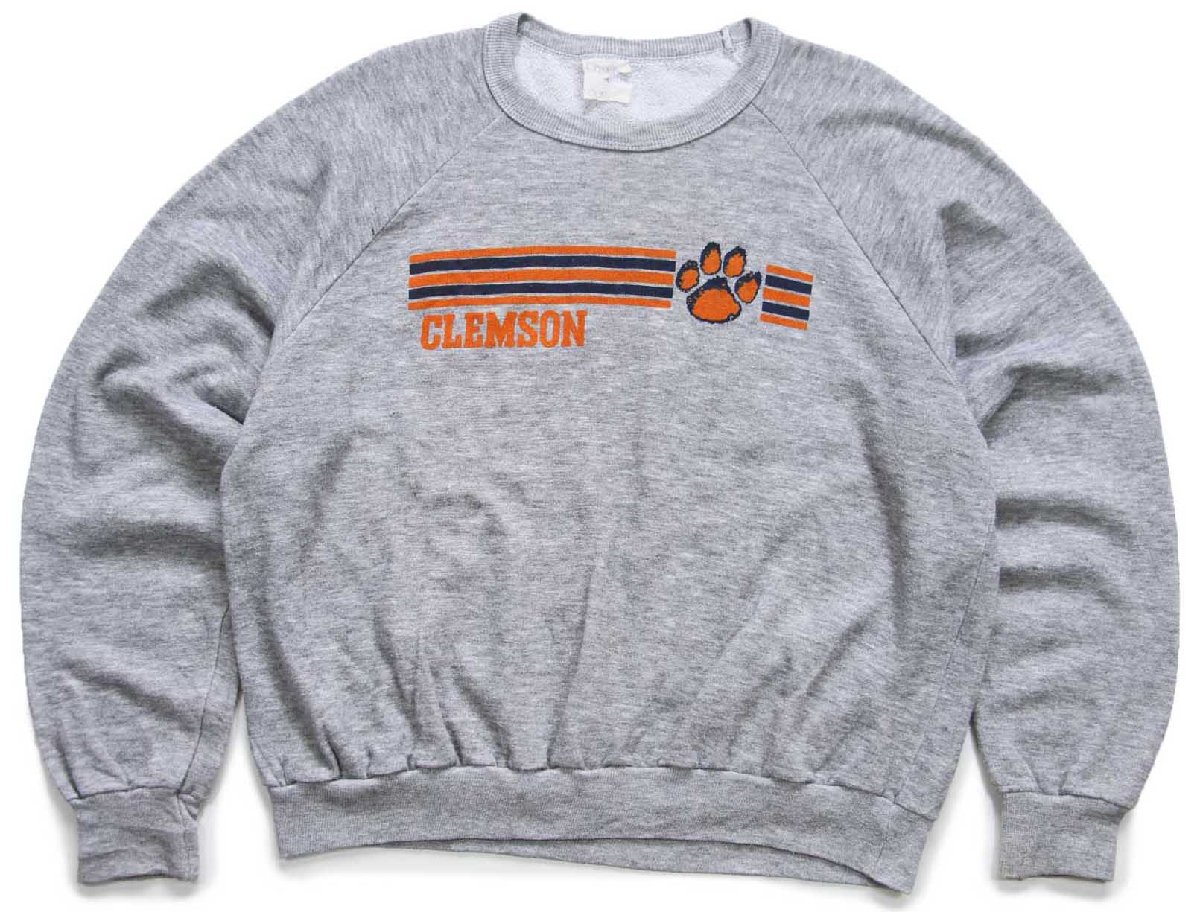 80s USA製 Chalk Line CLEMSON 足型 ショート丈 スウェット 杢グレー XL