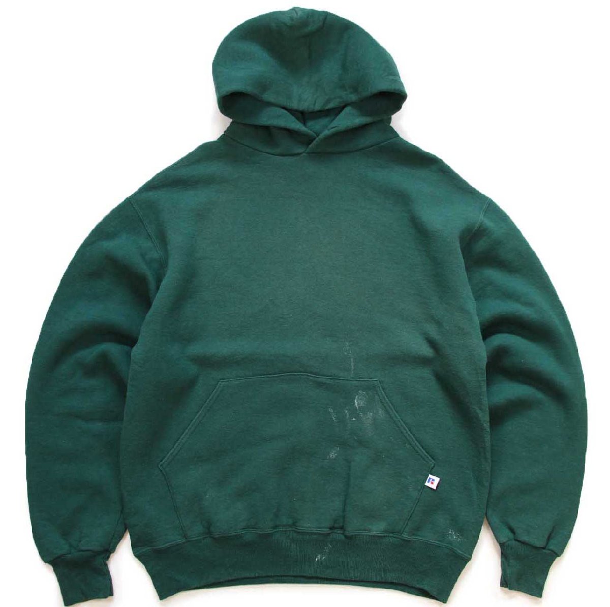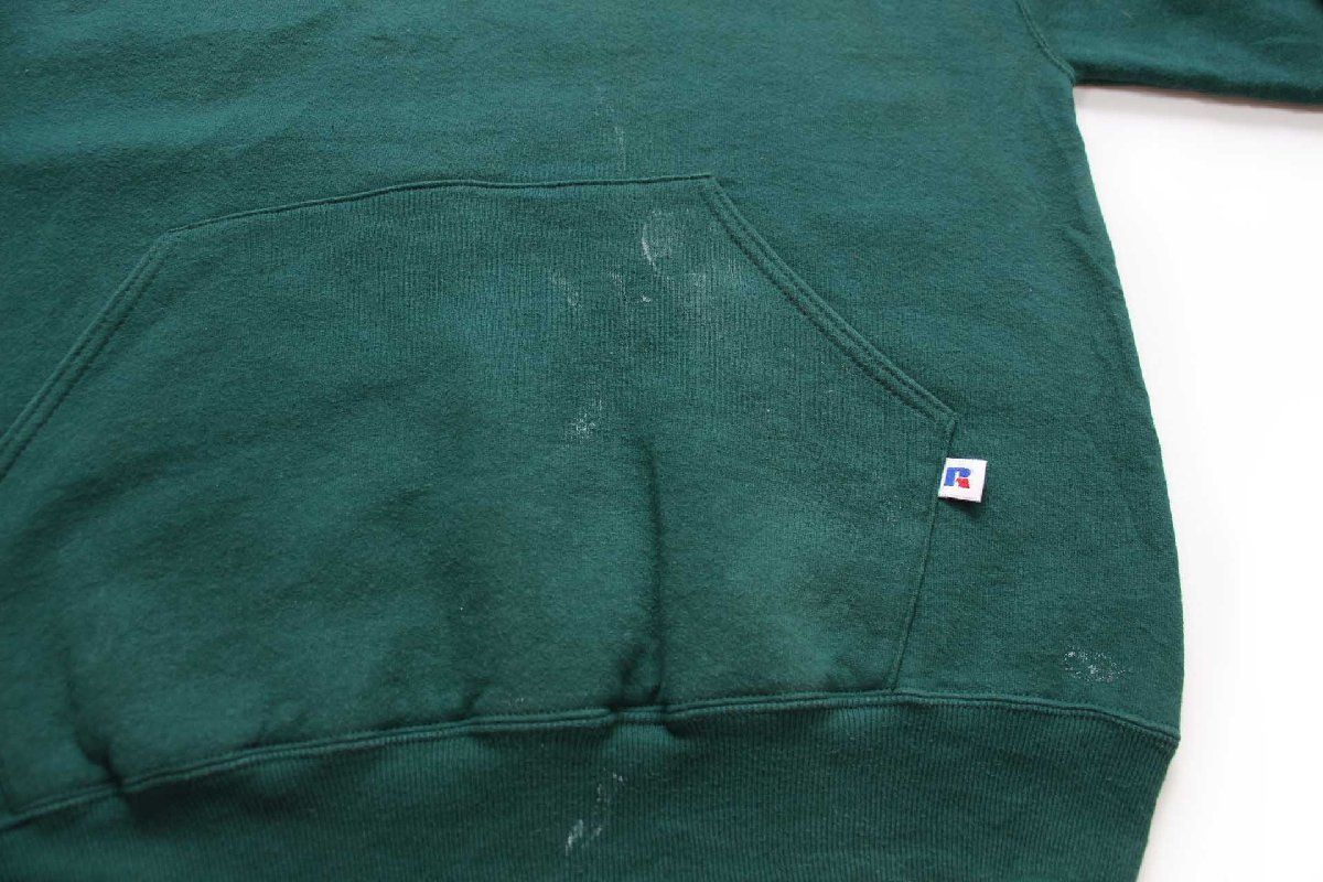 90s USA製 RUSSELLラッセル 無地 ペンキ飛び スウェットパーカー 緑 M★フーディー ブランク