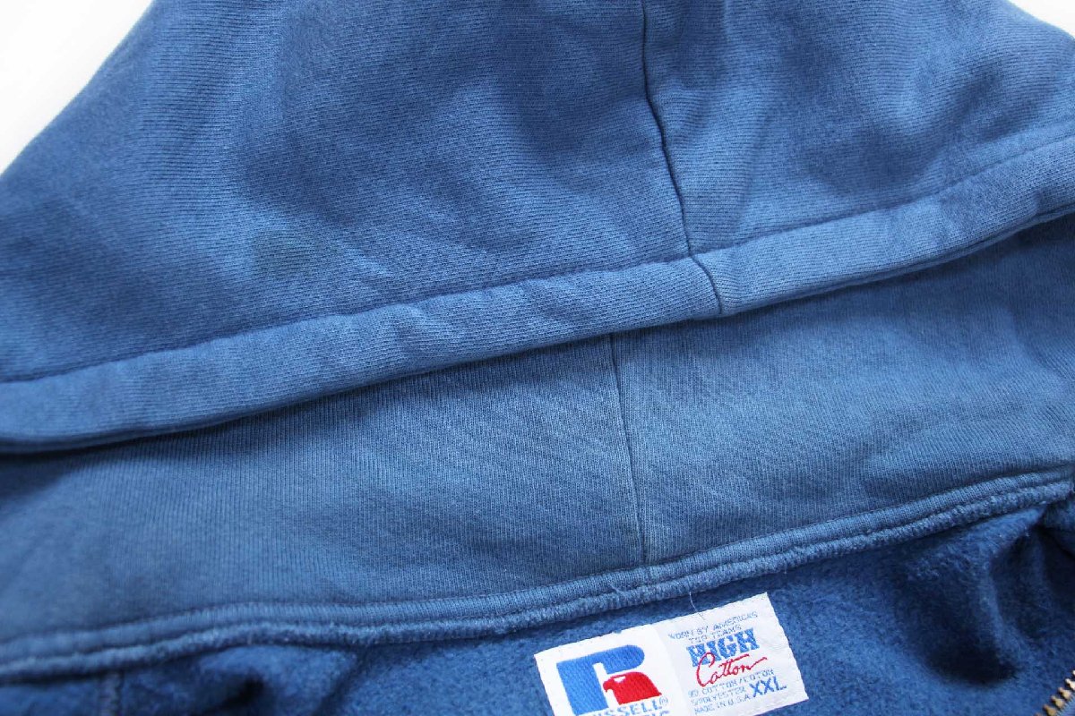 90s USA製 RUSSELLラッセル スウェット ジップパーカー ブルーグレー XXL★特大 フーディー ブランク