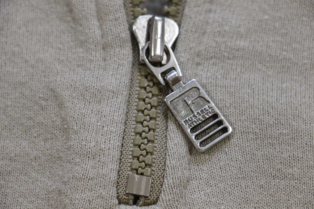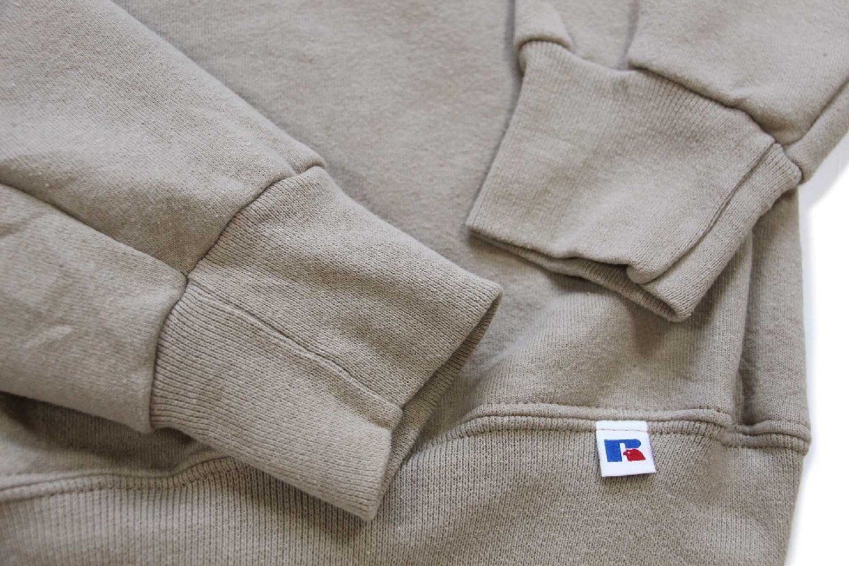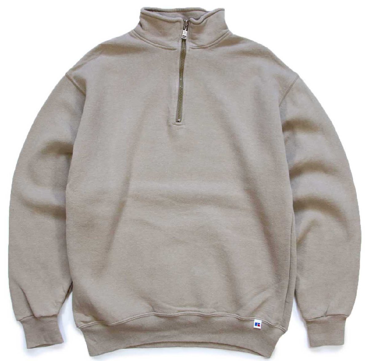 90s メキシコ製 RUSSELLラッセル 無地 ハイネック ハーフジップ スウェット グレーベージュ M★ブランク