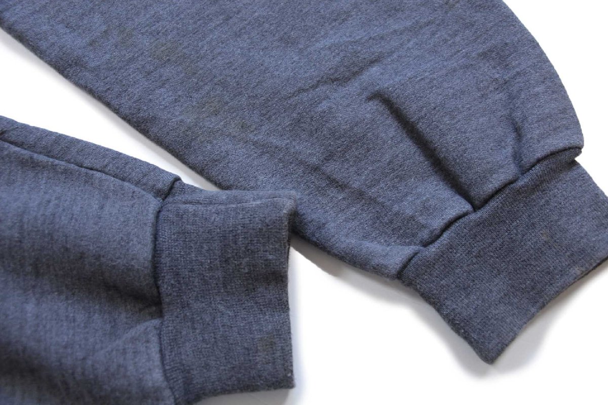 コンディション:着用感があり、フロント上部と両袖先に少しの薄汚れ、背中側の右脇ステッチに8cm程のリペアがあります。目立つダメージや酷い汚れはなく、生地もしっかりしていて、古着慣れされている方なら問題なく着用いただける程度です。