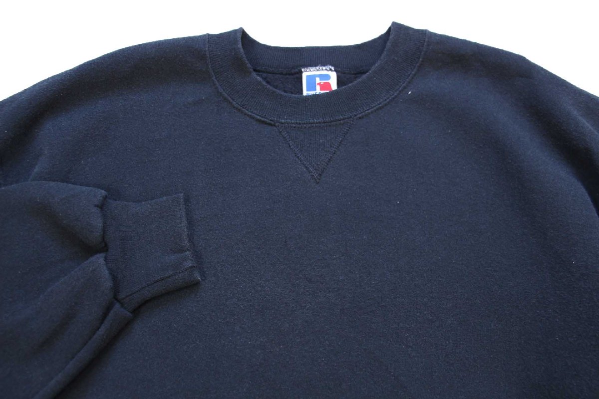 90s USA製 RUSSELLラッセル 無地 前V スウェット 黒 L★ブランク