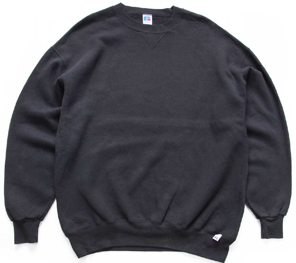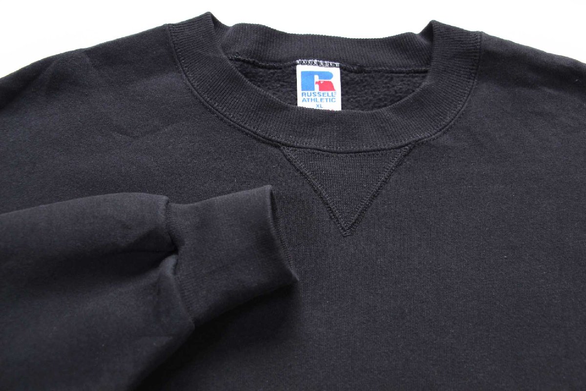 90s USA製 RUSSELLラッセル 無地 前V スウェット 黒 フェード XL★ブランク