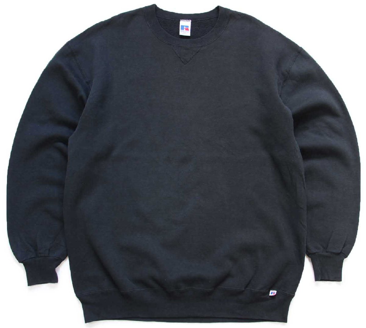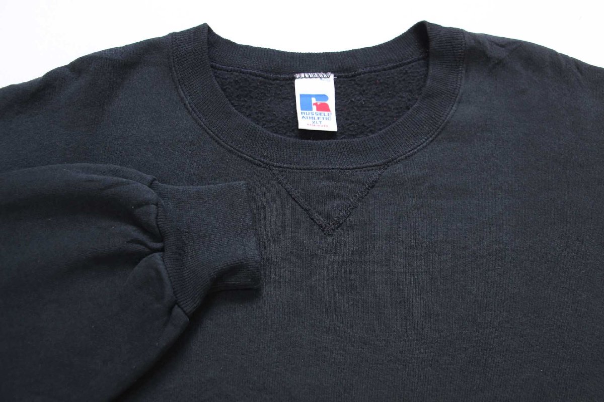 90s USA製 RUSSELLラッセル 無地 前V スウェット 黒 XLT★ブランク