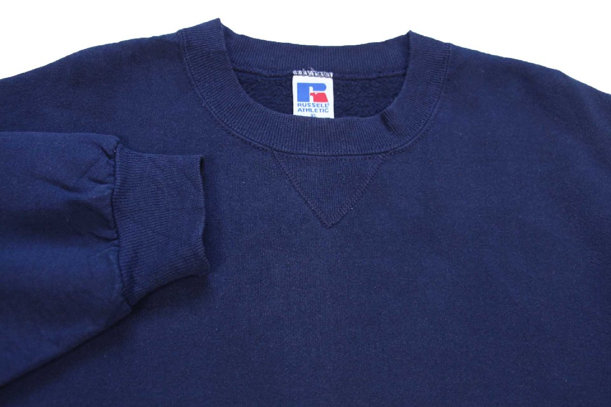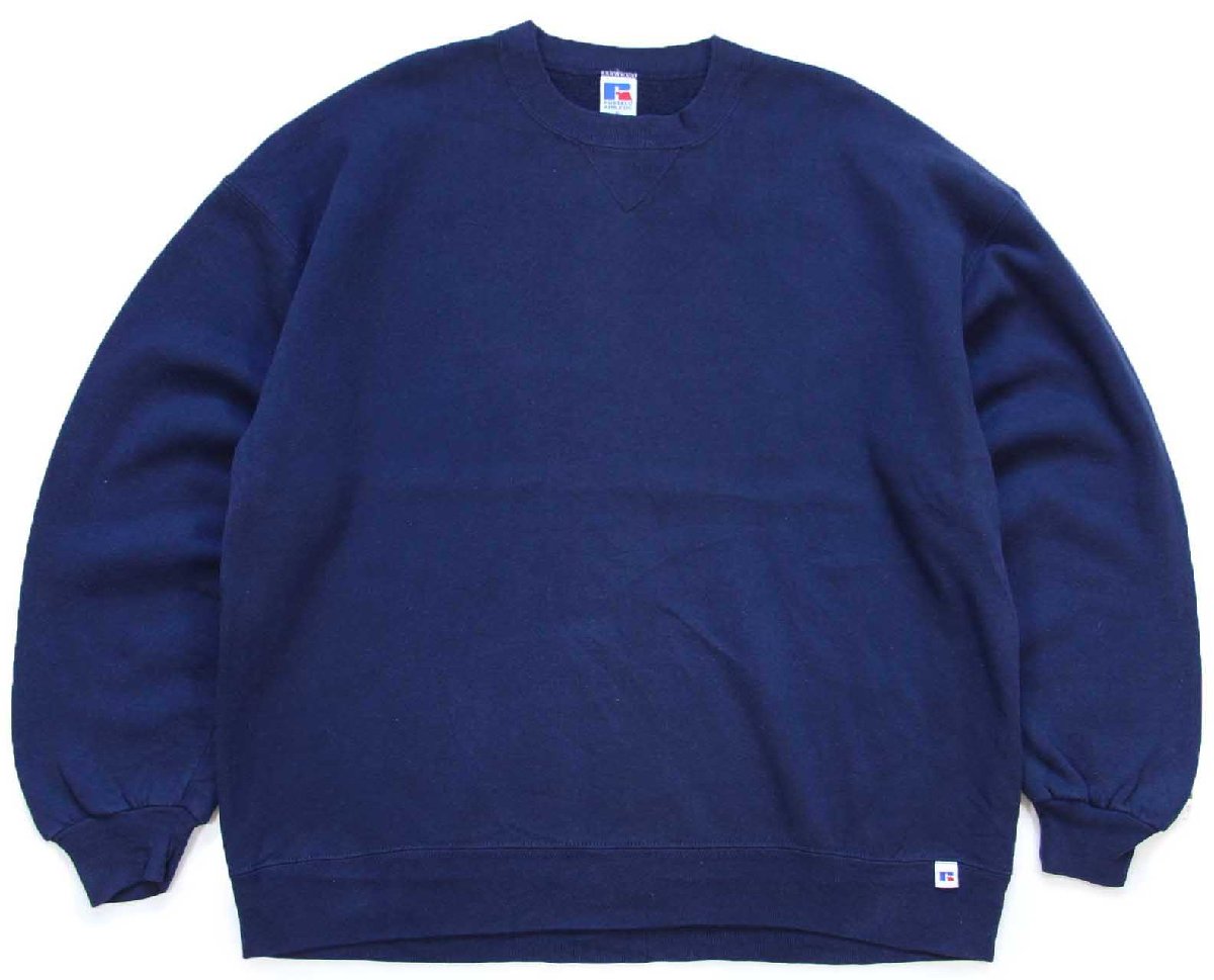 90s USA製 RUSSELLラッセル 無地 前V スウェット 紺 XL★ブランク