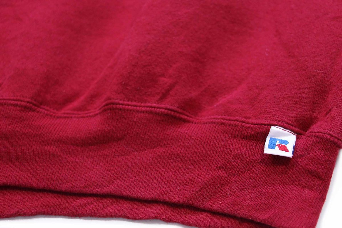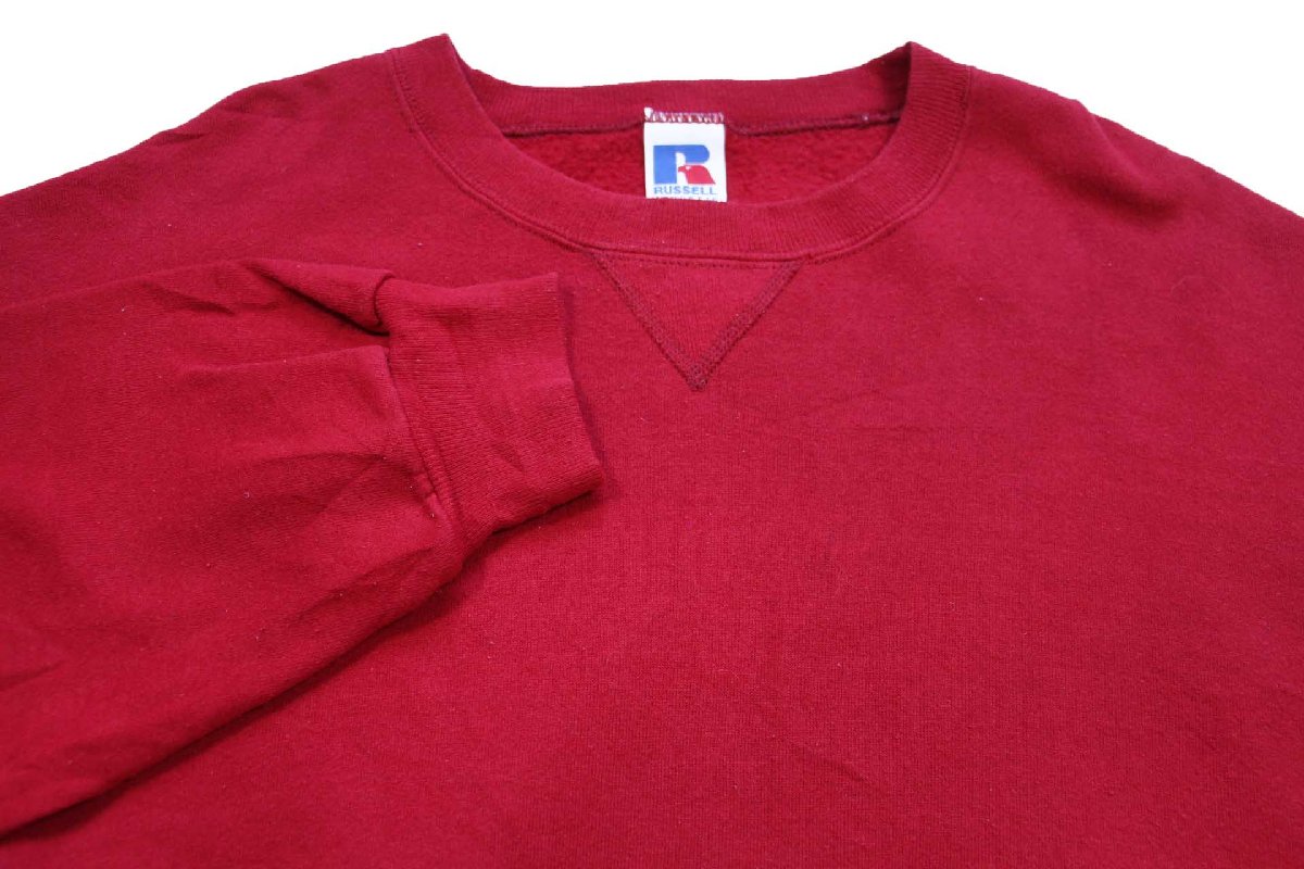 90s メキシコ製 RUSSELLラッセル 無地 前V スウェット 濃赤 M★ブランク