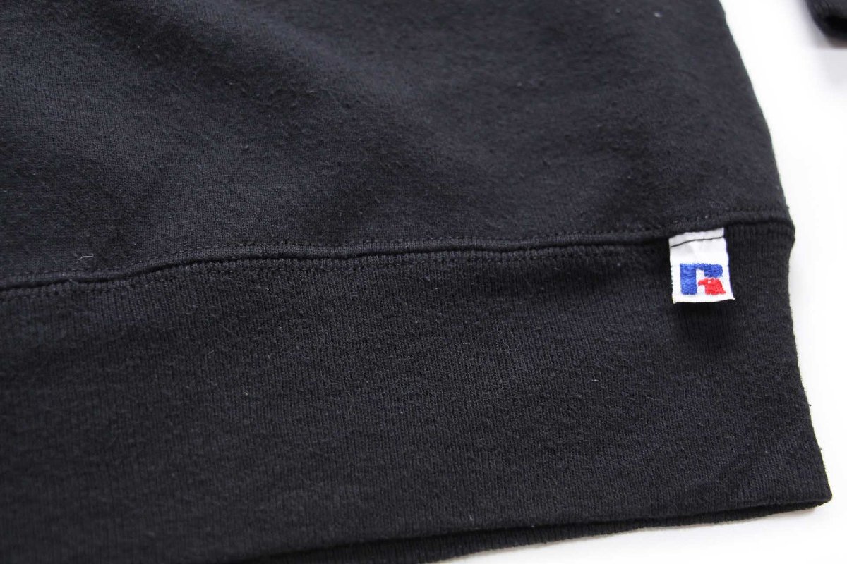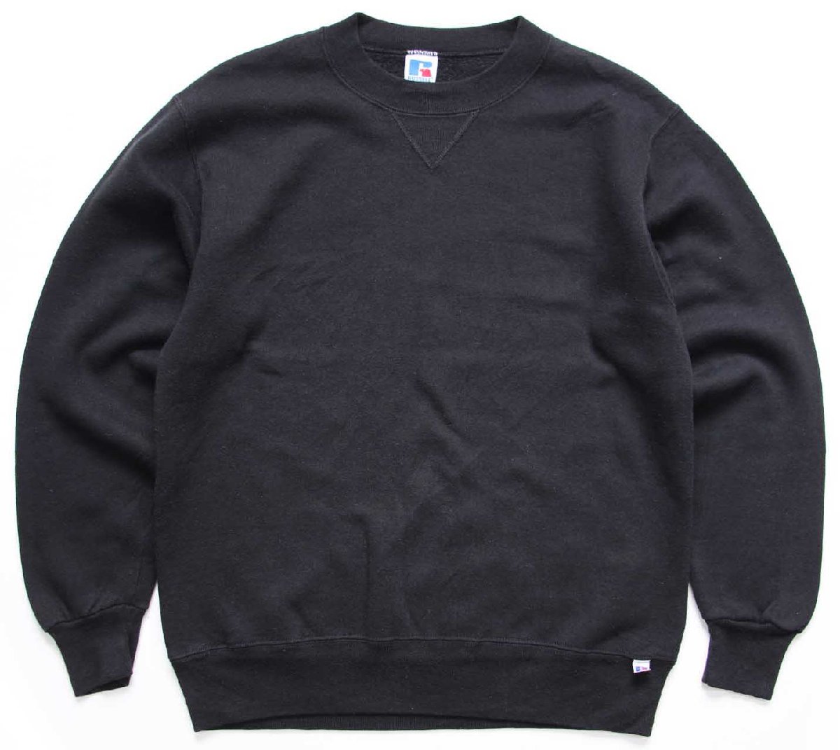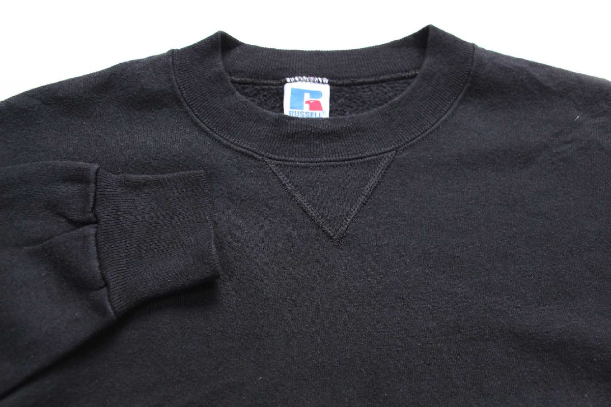 90s USA製 RUSSELLラッセル 無地 前V スウェット 黒 M★ブランク