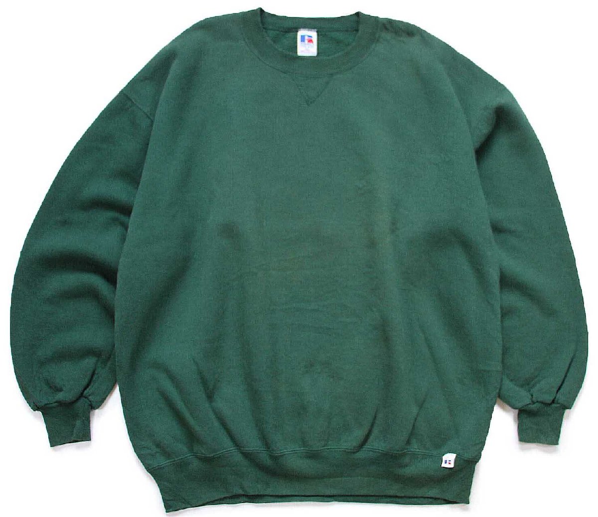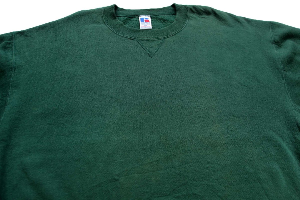 90s USA製 RUSSELLラッセル 無地 前V スウェット 緑 XXL★特大 ブランク