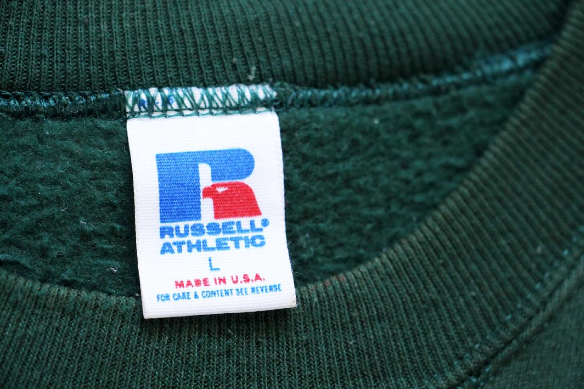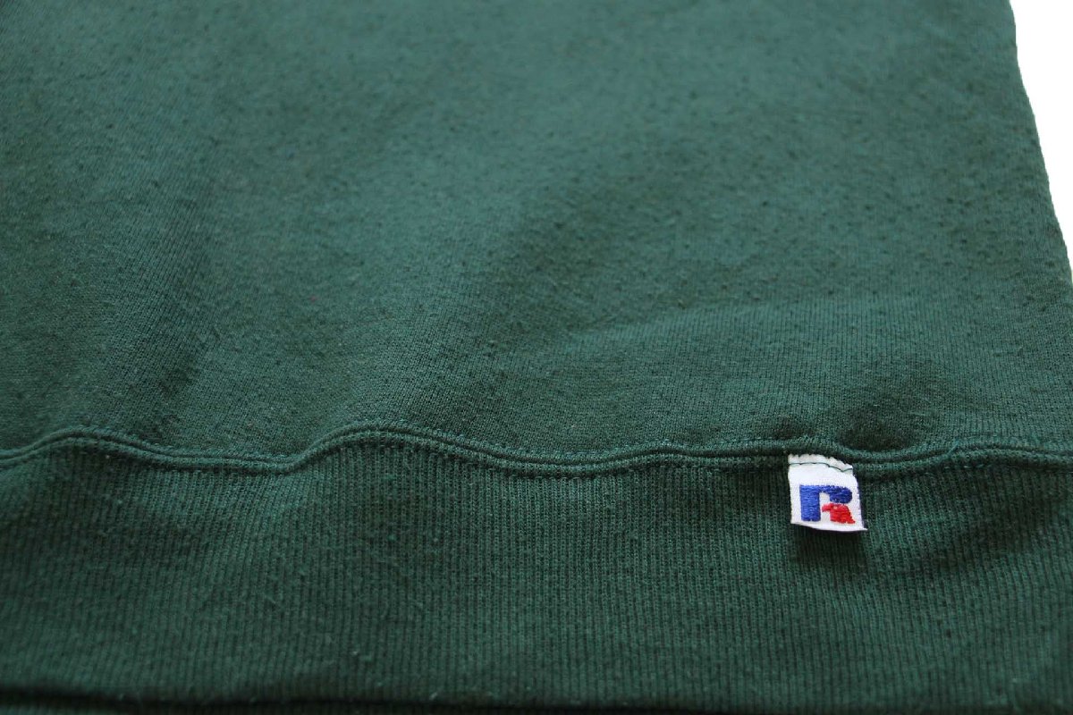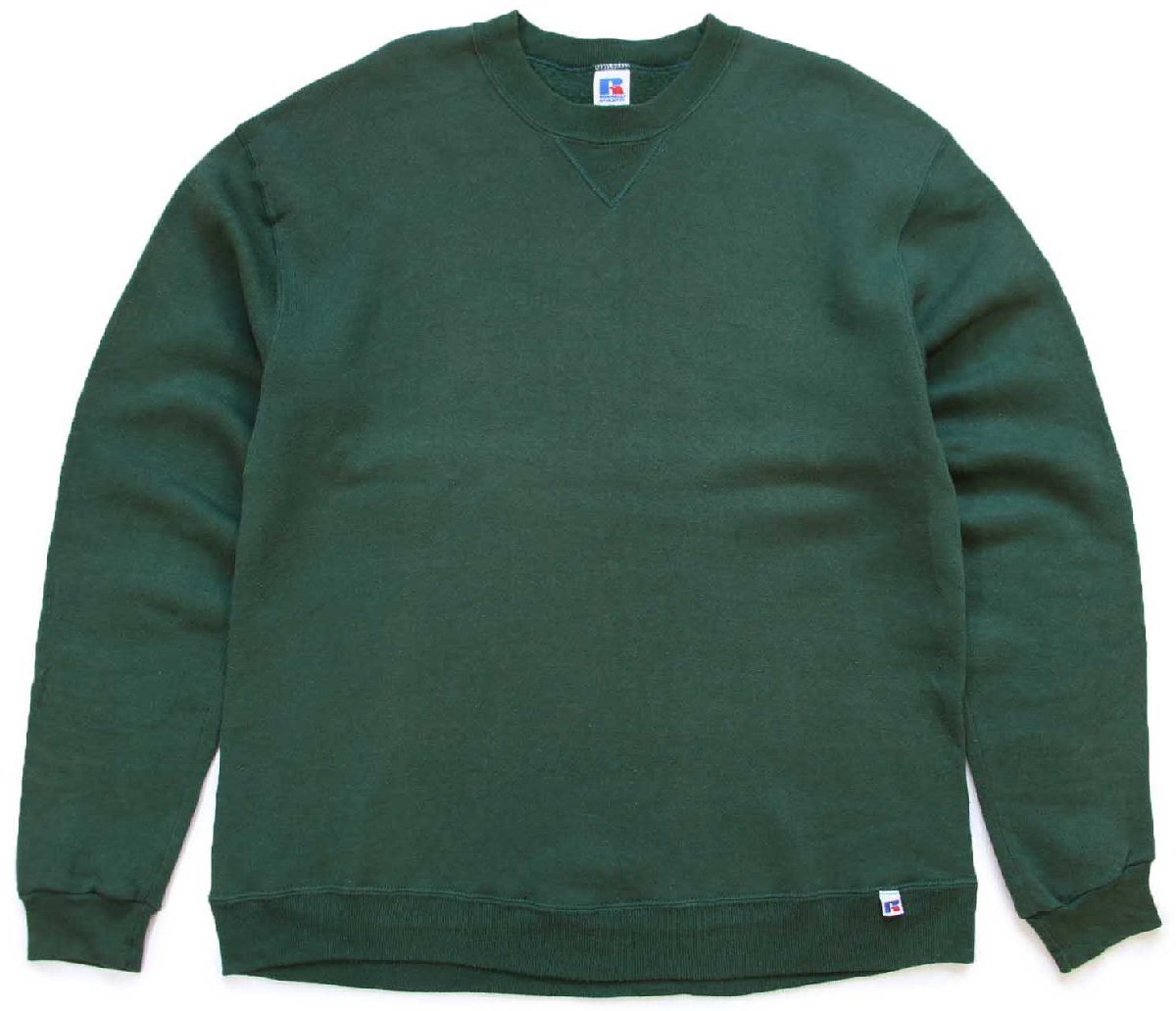 80s USA製 RUSSELLラッセル 無地 前V スウェット 緑 L★ブランク