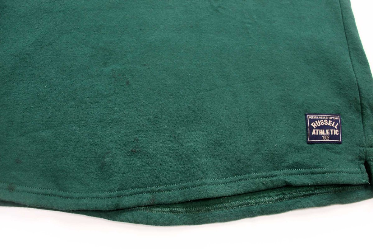 90s USA製 RUSSELLラッセル 無地 ヘンリーネック スウェット 緑 XL★ブランク