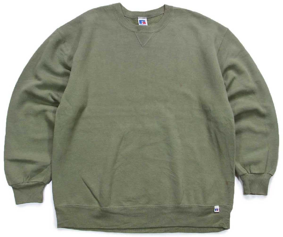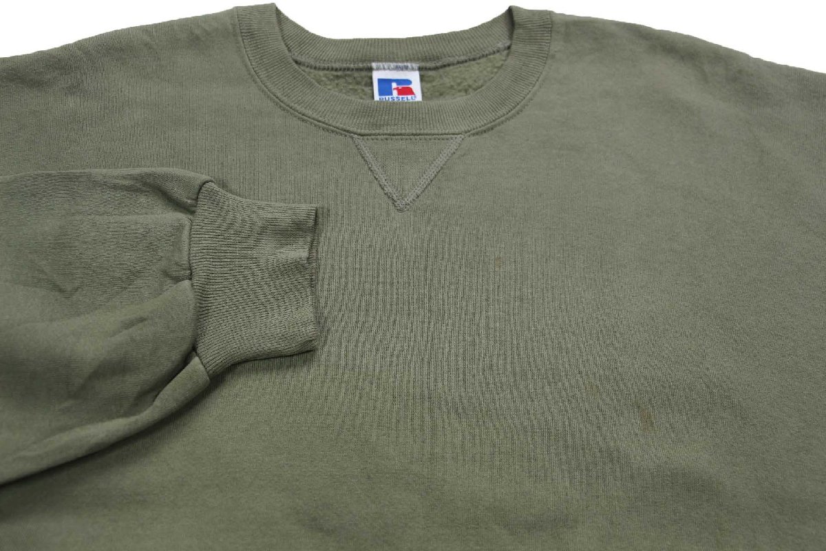 90s USA製 RUSSELLラッセル 無地 前V スウェット 薄緑 XL★ブランク