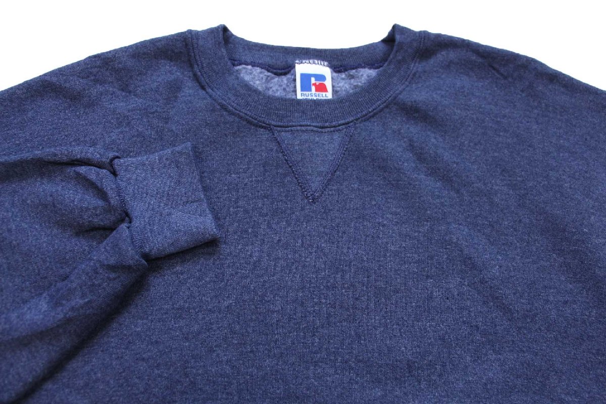 90s メキシコ製 RUSSELLラッセル 無地 前V スウェット 杢ネイビー L★ブランク