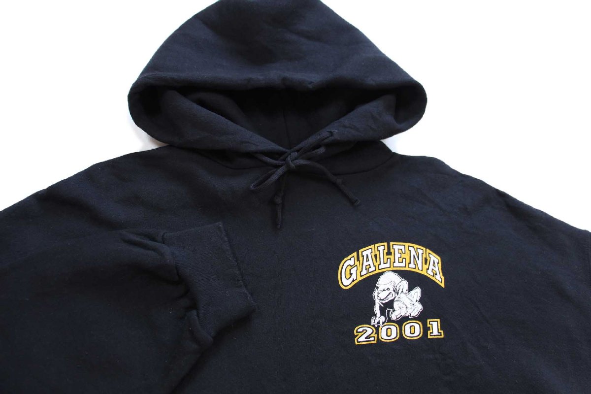 00s メキシコ製 RUSSELLラッセル GALENA 2001 スウェットパーカー 黒 XXL★特大 フーディー