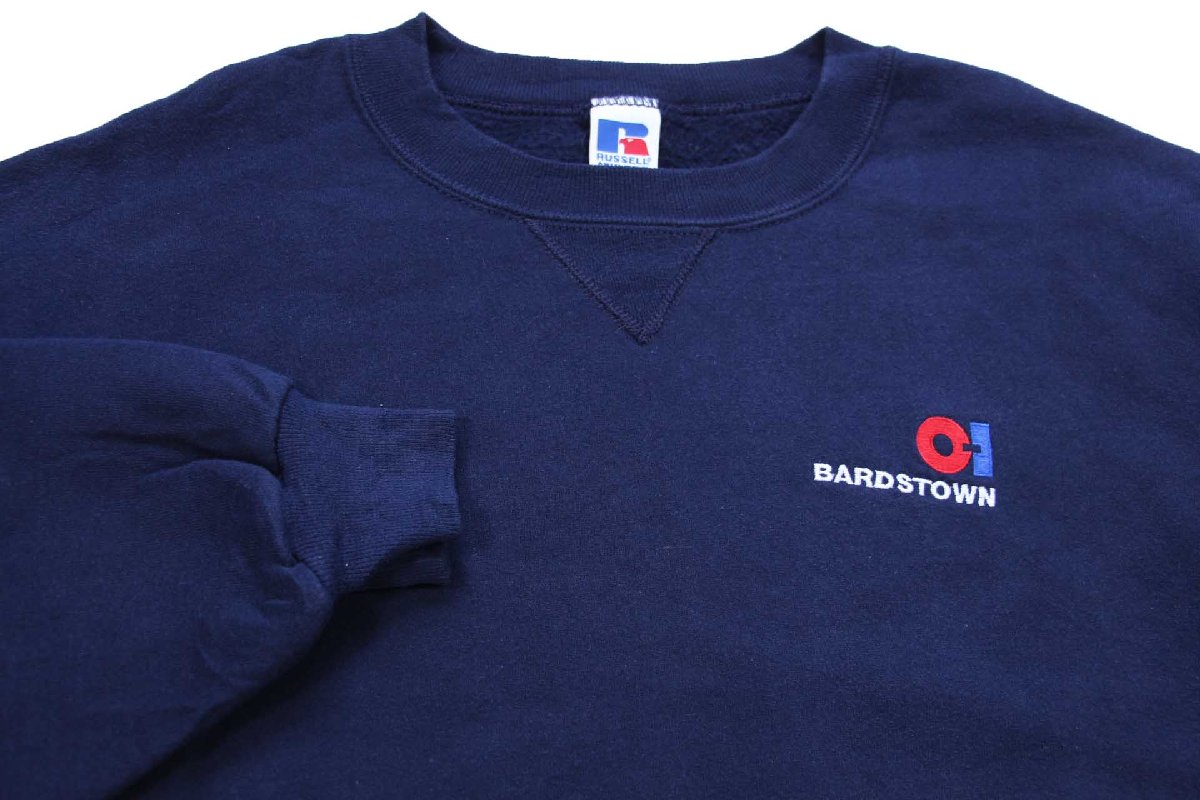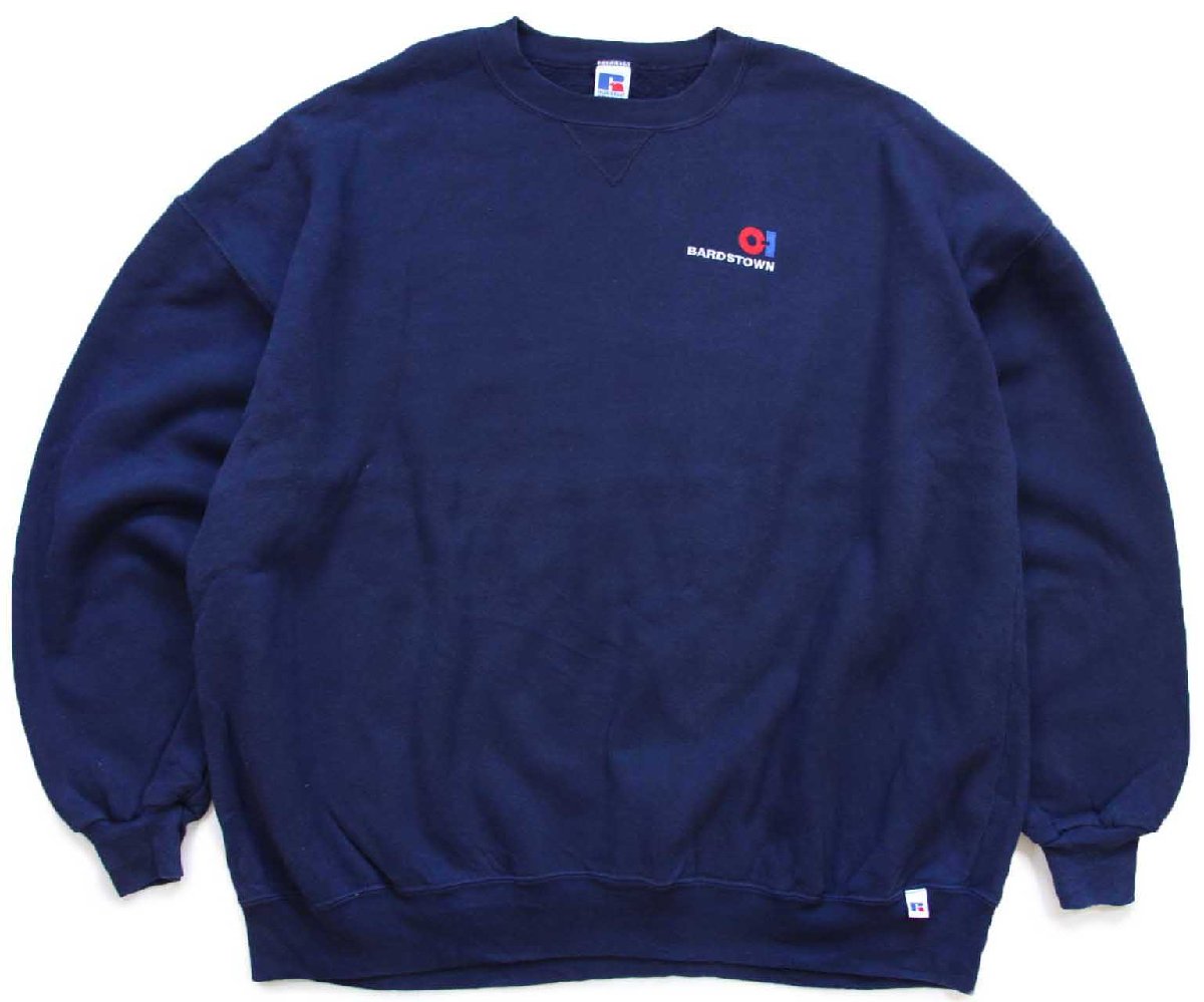 90s USA製 RUSSELLラッセル BARDSTOWN 刺繍 前V スウェット 紺 XXXXL★超特大