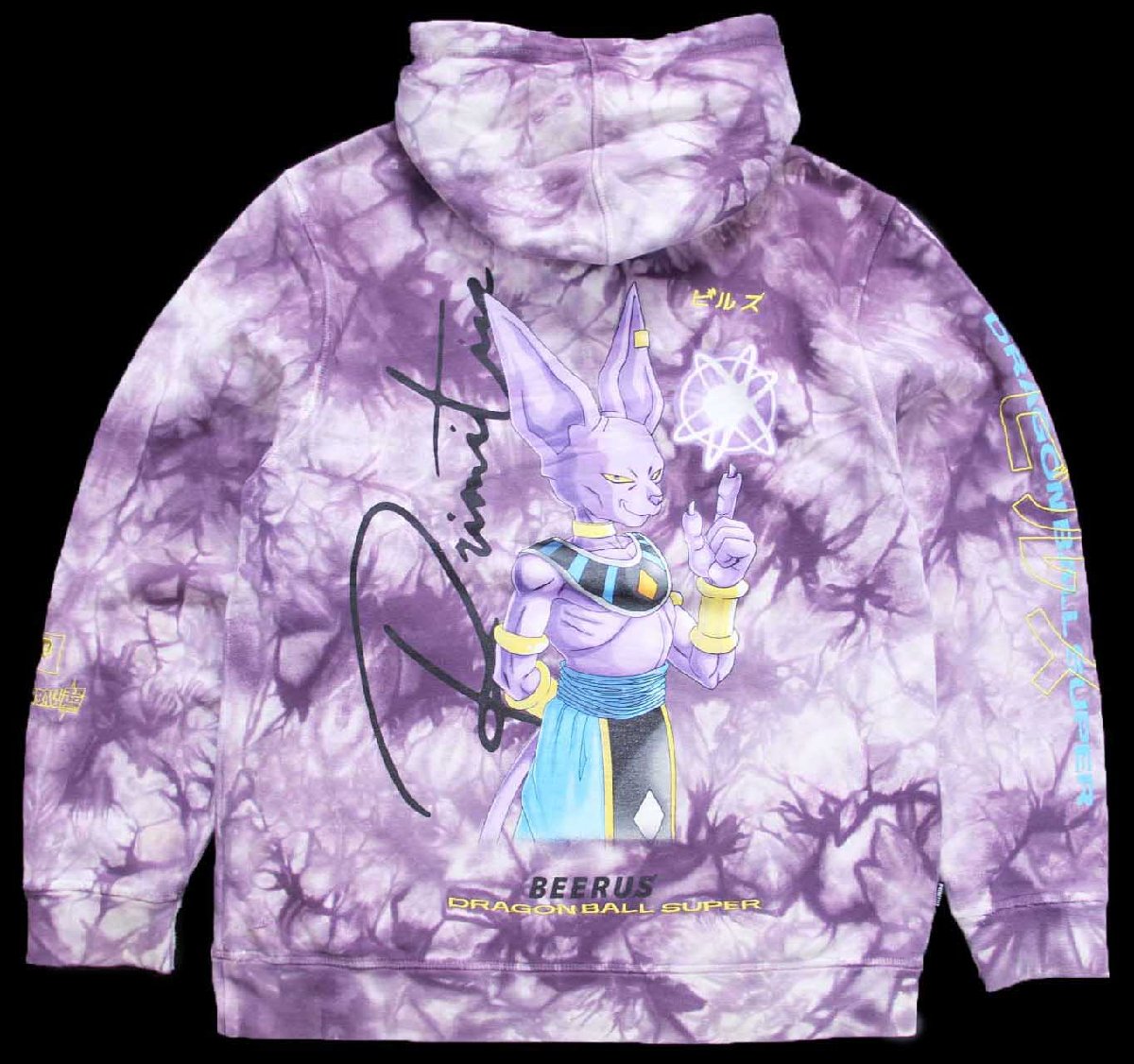 DRAGONBALL SUPER ドラゴンボール超 破壊神ビルス 両面&袖 刺繍&プリント タイダイ染め スウェットパーカー S★フーディー