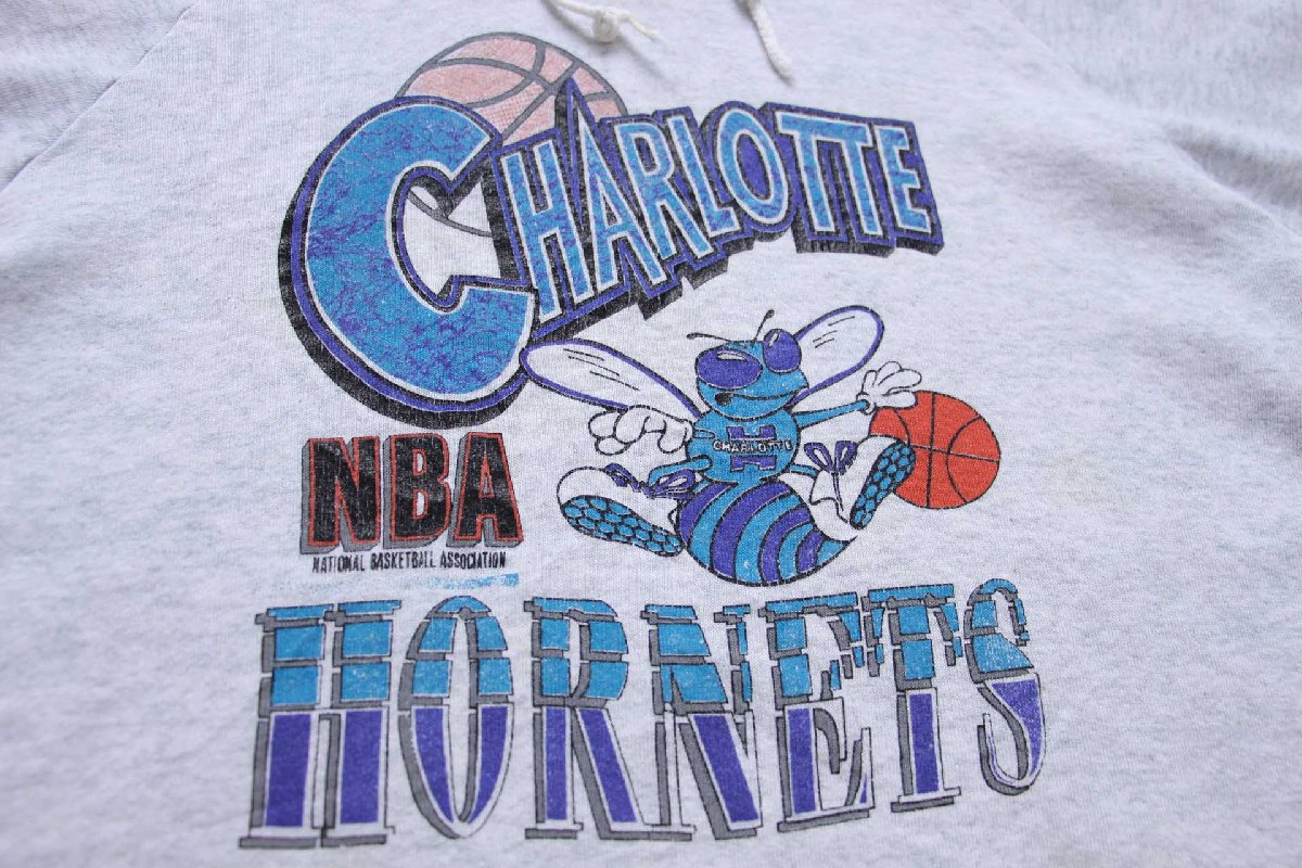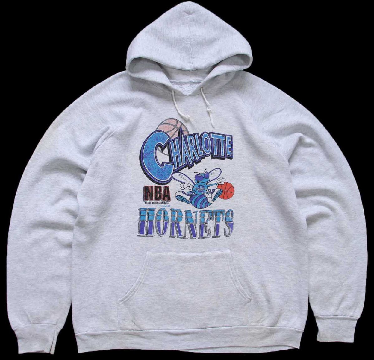 80s NBA CHARLOTTE HORNETS マスコット スウェットパーカー 杢ライトグレー★フーディー