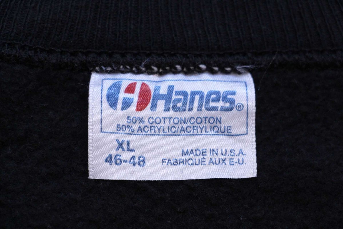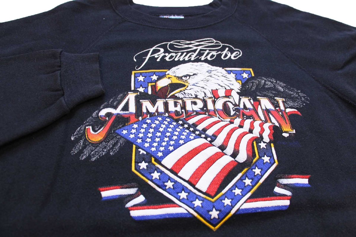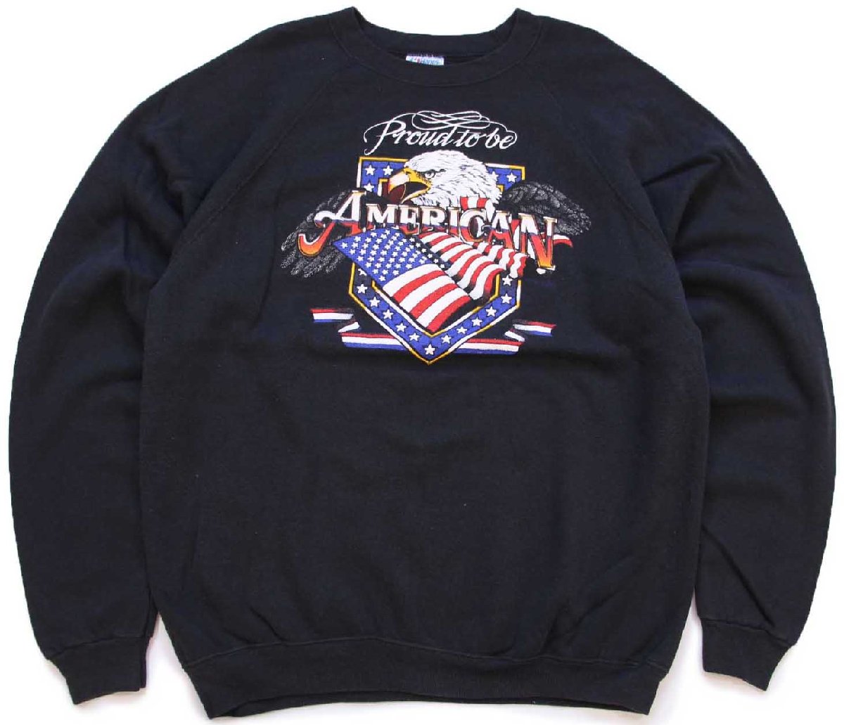 80s USA製 Hanes Proud to be AMERICAN イーグル 星条旗 発泡プリント スウェット 黒 XL