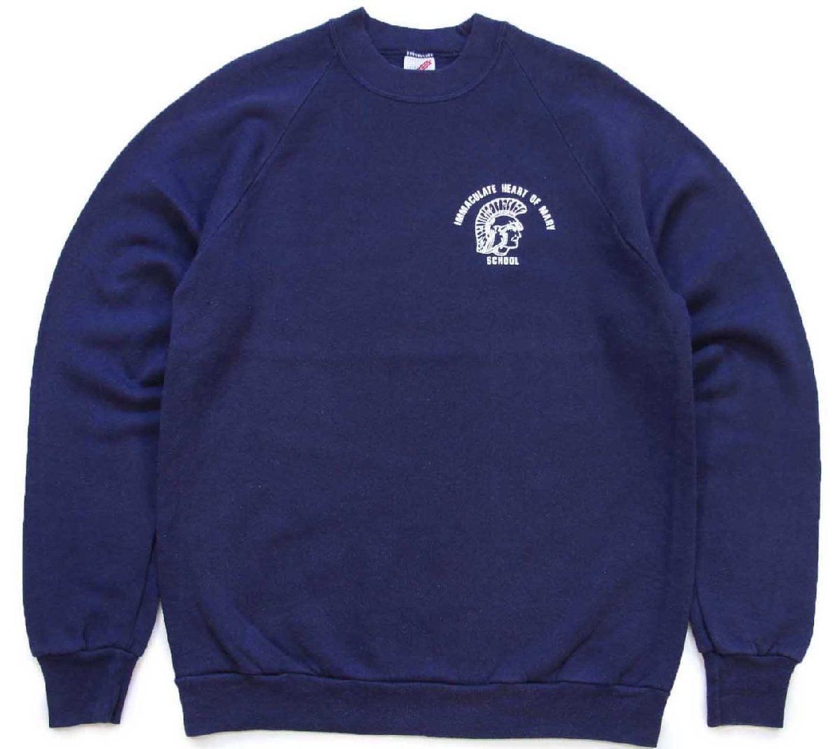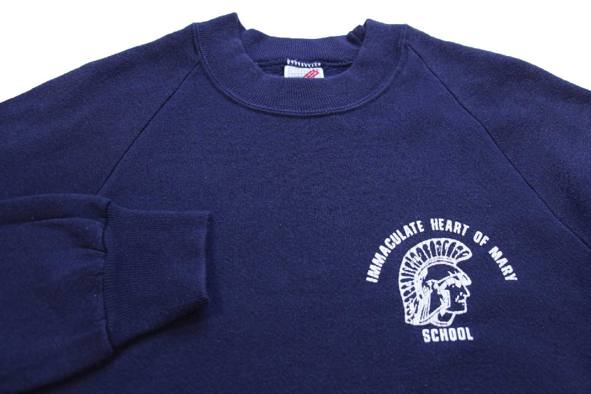 80s USA製 IMMACULATE HEART OF MARY SCHOOL ナイト ひび割れプリント スウェット 紺 L★RUSSELLラッセル