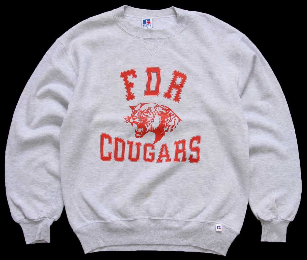 90s USA製 RUSSELLラッセル FDR COUGARS 前V スウェット 杢ライトグレー M