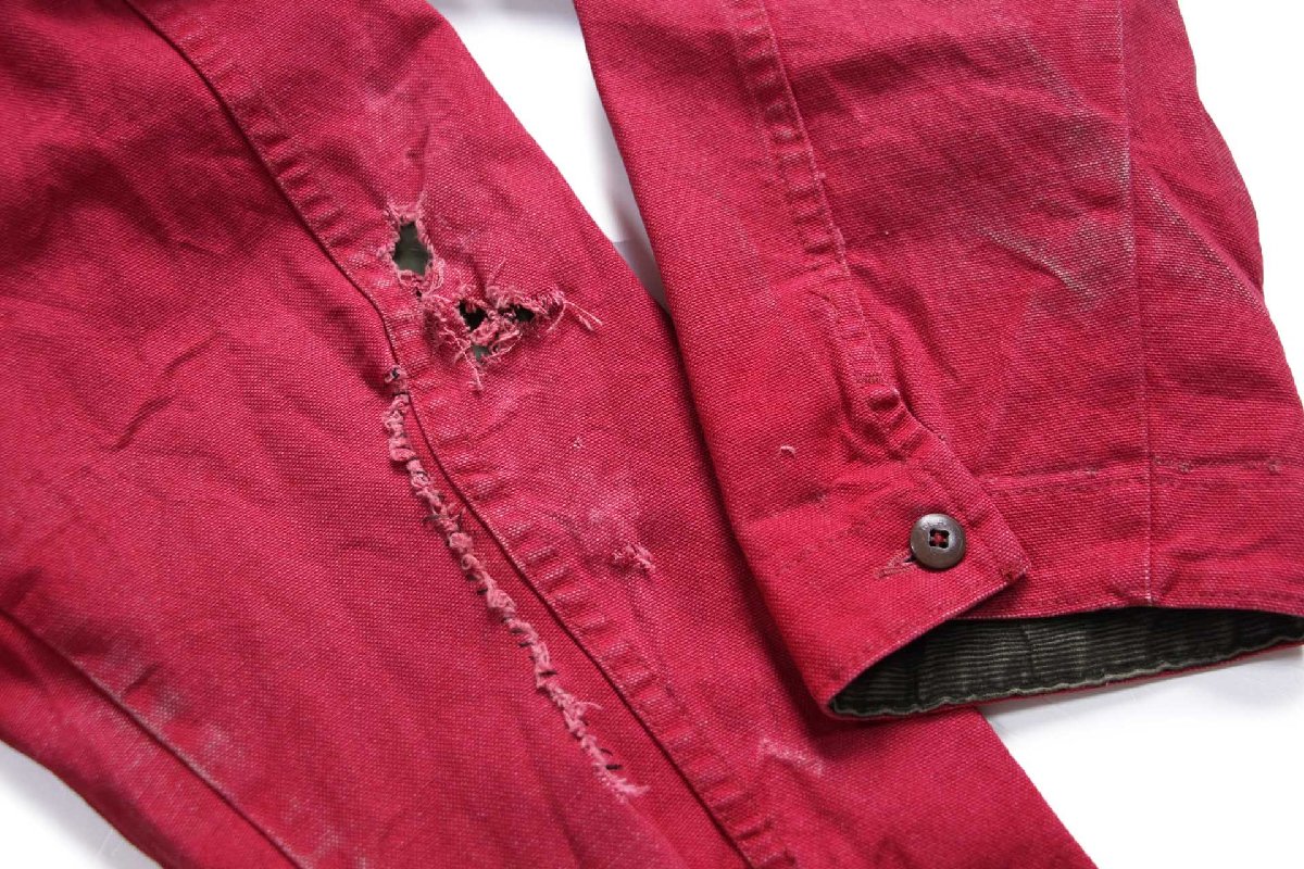 コンディション:着用感があり、所々に多少の色落ち、タグや所々に若干の薄汚れ、袖先に小キズ、右袖に破れと15cm程のリペアがあります。