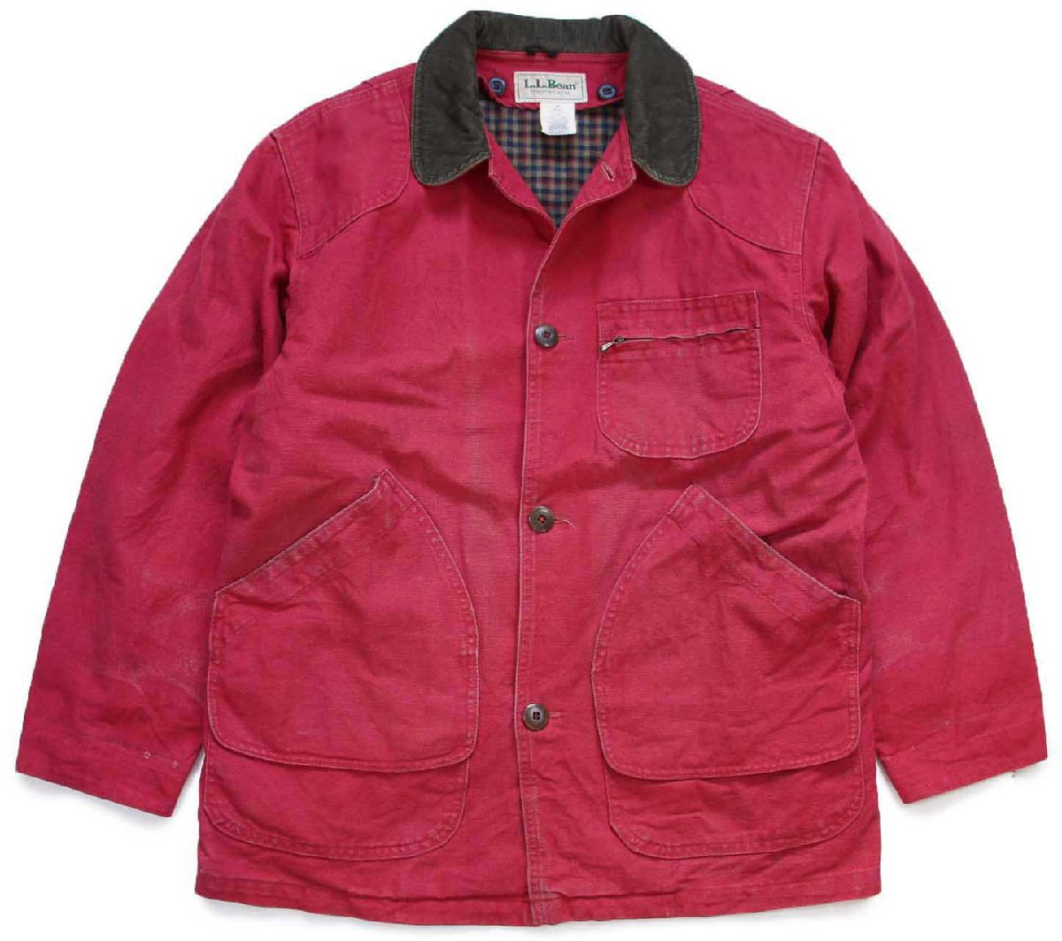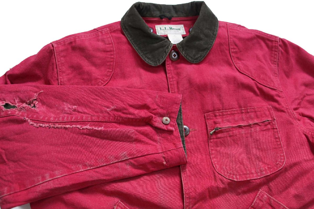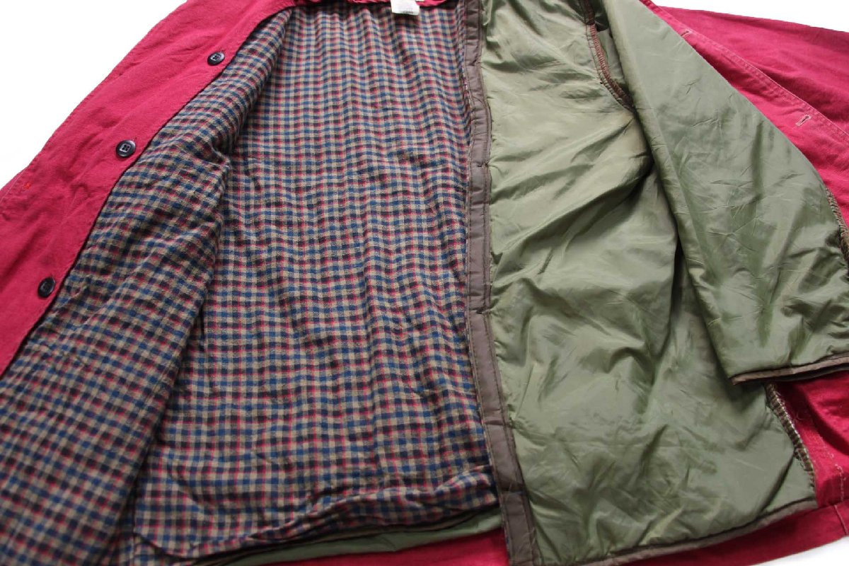 90s USA製 L.L.Bean PRIMALOFTプリマロフト ライナー付き ダメージ ダック地 フィールドコート 赤紫 M★ジャケット ハンティング