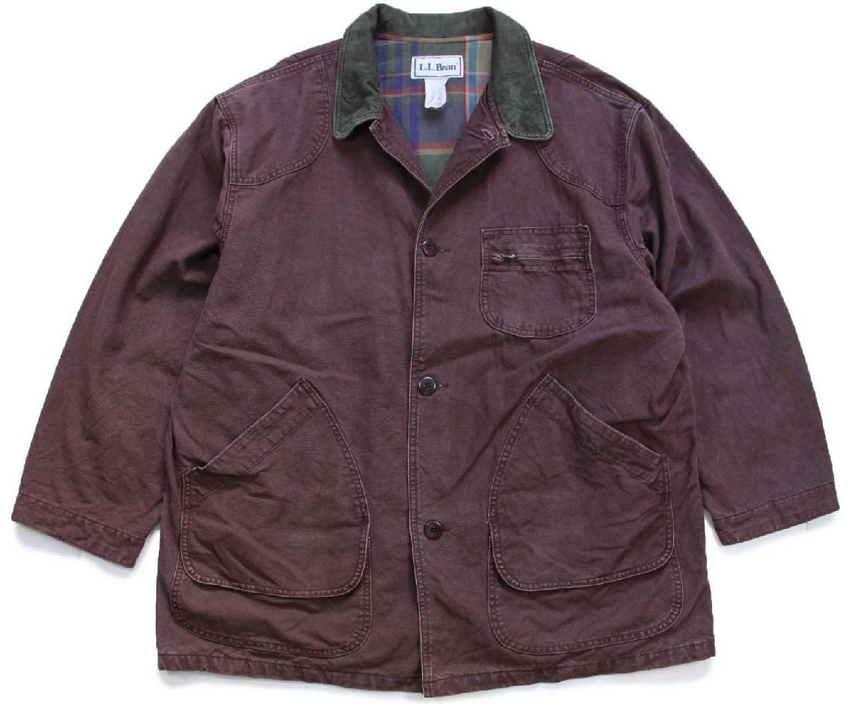 90s L.L.Bean チェック ライナー ダック地 フィールドコート 焦げ茶★ジャケット ハンティング